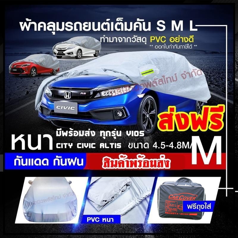 พร้อมกระเป๋าเก็บของ ผ้าคลุมรถ กันฝุ่น สำหรับคลุมรถ กันยูวี กันฝน กันน้ำ 100% รถทุกรุ่นมีแถบสะท้อนแสง ส่งได้ทั่วไทย