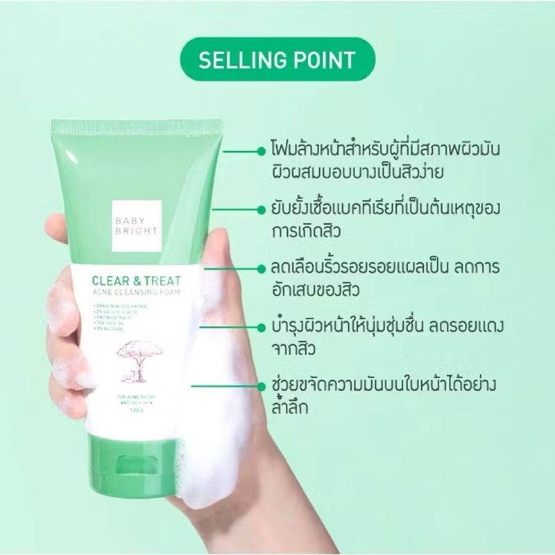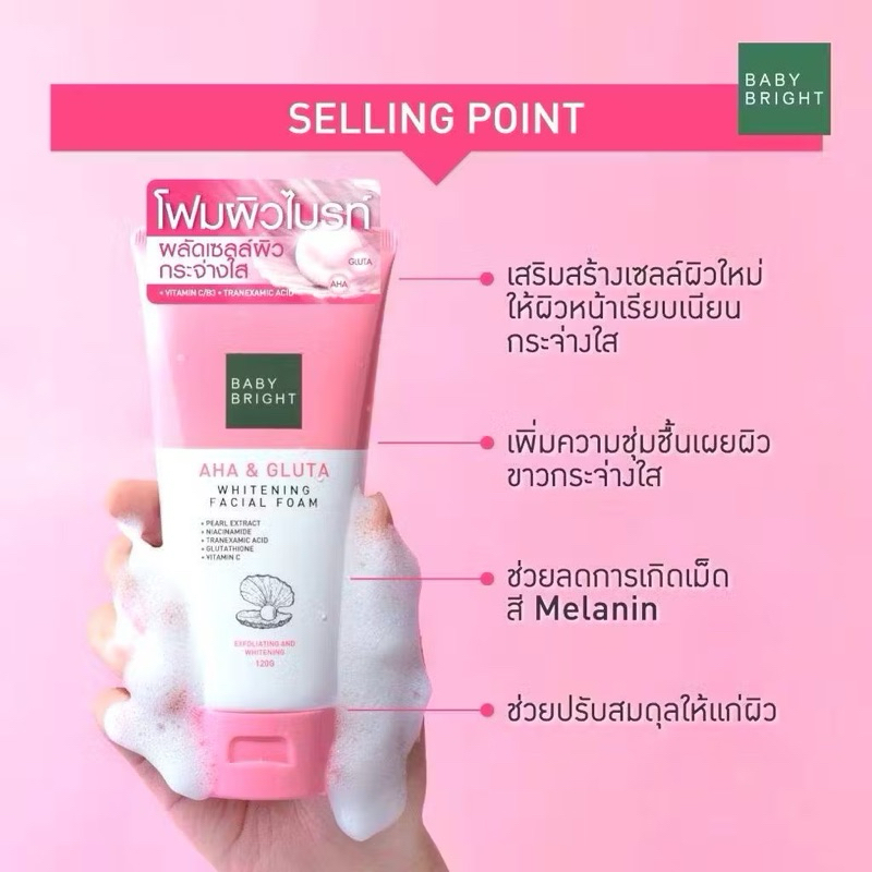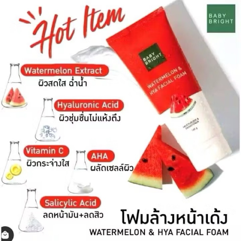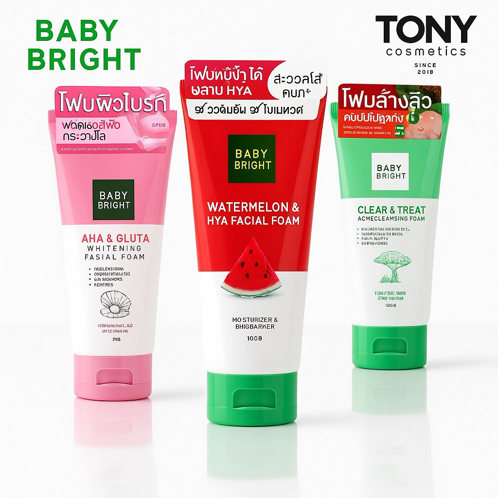 เบบี้ไบร์ท โฟมล้างหน้า 3 สูตร Baby Bright Clear Treat Acne / gluta whitening /L2/ Watermelon & Hya ขนาด 120,160g