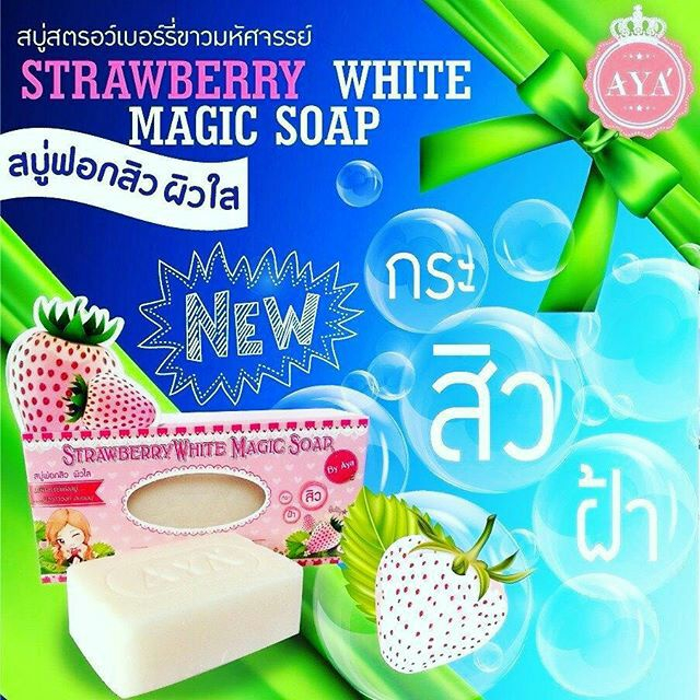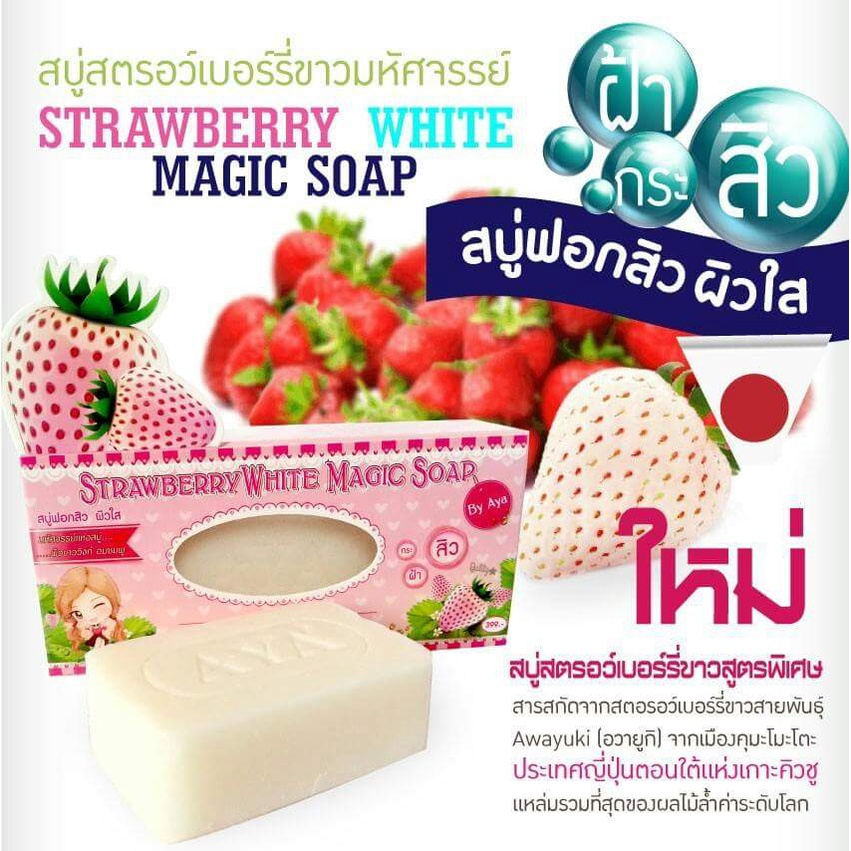ส่งฟรี/มีไลฟ์ (1 ก้อน) AYA Strawberry White Magic Soap สบู่ฟอกสิว ผิวใส สบู่สตรอว์เบอร์รี่ขาวมหัศจรรย์ 100