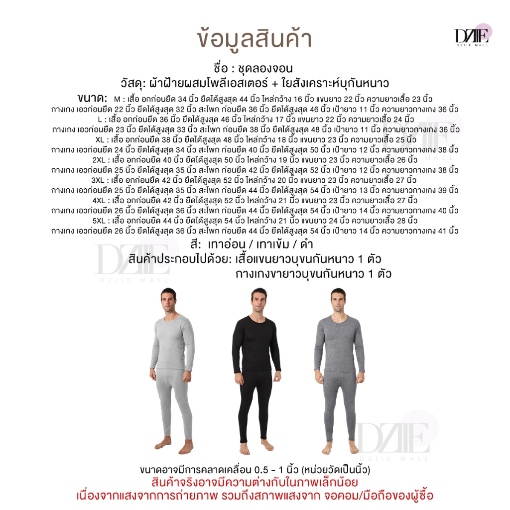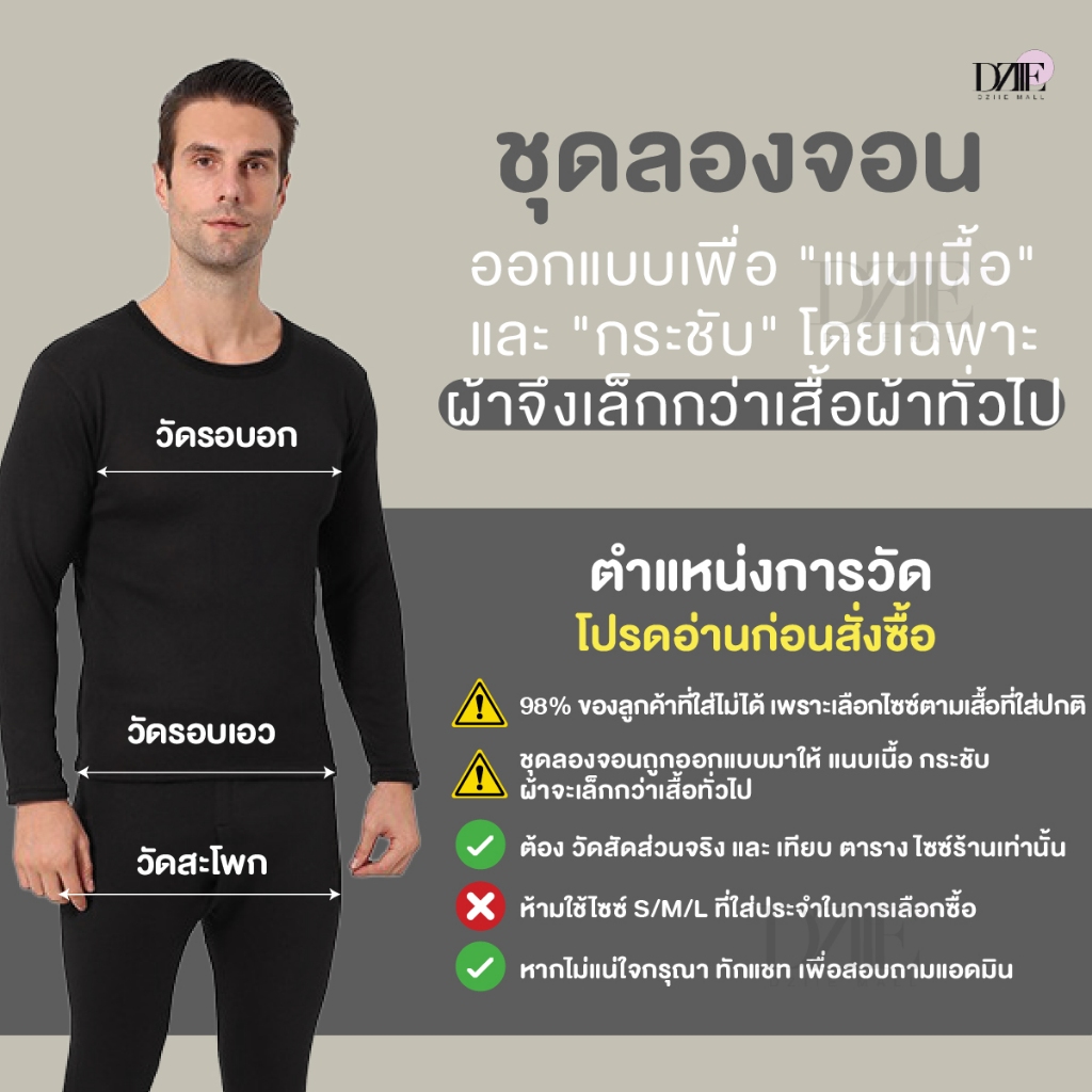 [วัดไซซ์ก่อนสั่ง][รุ่นหนา][เสื้อ+กางเกง] DZIIEMALL Long John ชุดลองจอน หนา บุขน กันหนาว ติดลบ ลองจอน ฮีทเทค ผู้ชาย ฤดูหน