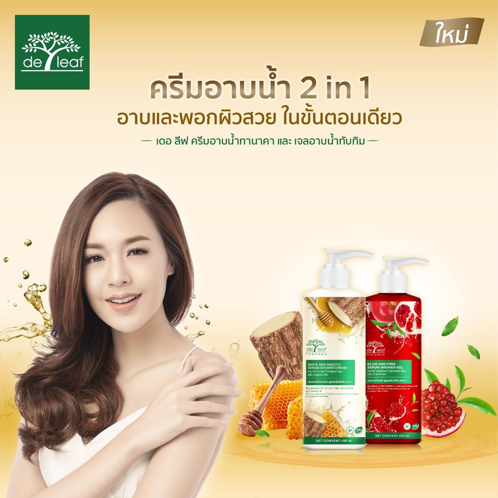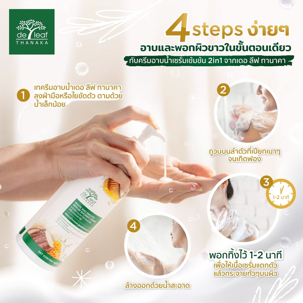 De leaf Thanaka ครีมอาบน้ำเดอ ลีฟ ทานาคา เซรั่ม ชาวเวอร์ ครีม (ขนาด 450 มล.)