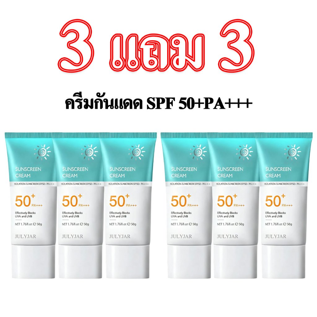 【ซื้อ 3 แถม 3 】 ครีมกันแดด 50+PA+++ โลชั่นกันแดด 2in1 เนื้อครีมบางเบา ไม่เป็นสิว ผิวแพ้ง่ายใช้ได้ กันแดดคุมมัน 50g