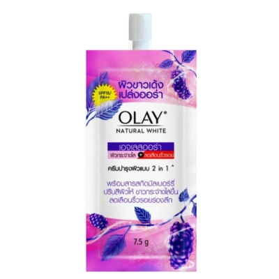 (สีม่วง)OLAY natural aura โอเลย์ เนเจอรัล ออร่า เอจเลส ออร่า (ครีมบำรุงผิวหน้า แบบ2in1) ขนาด 7.5g. *กล่อง6ซอง*