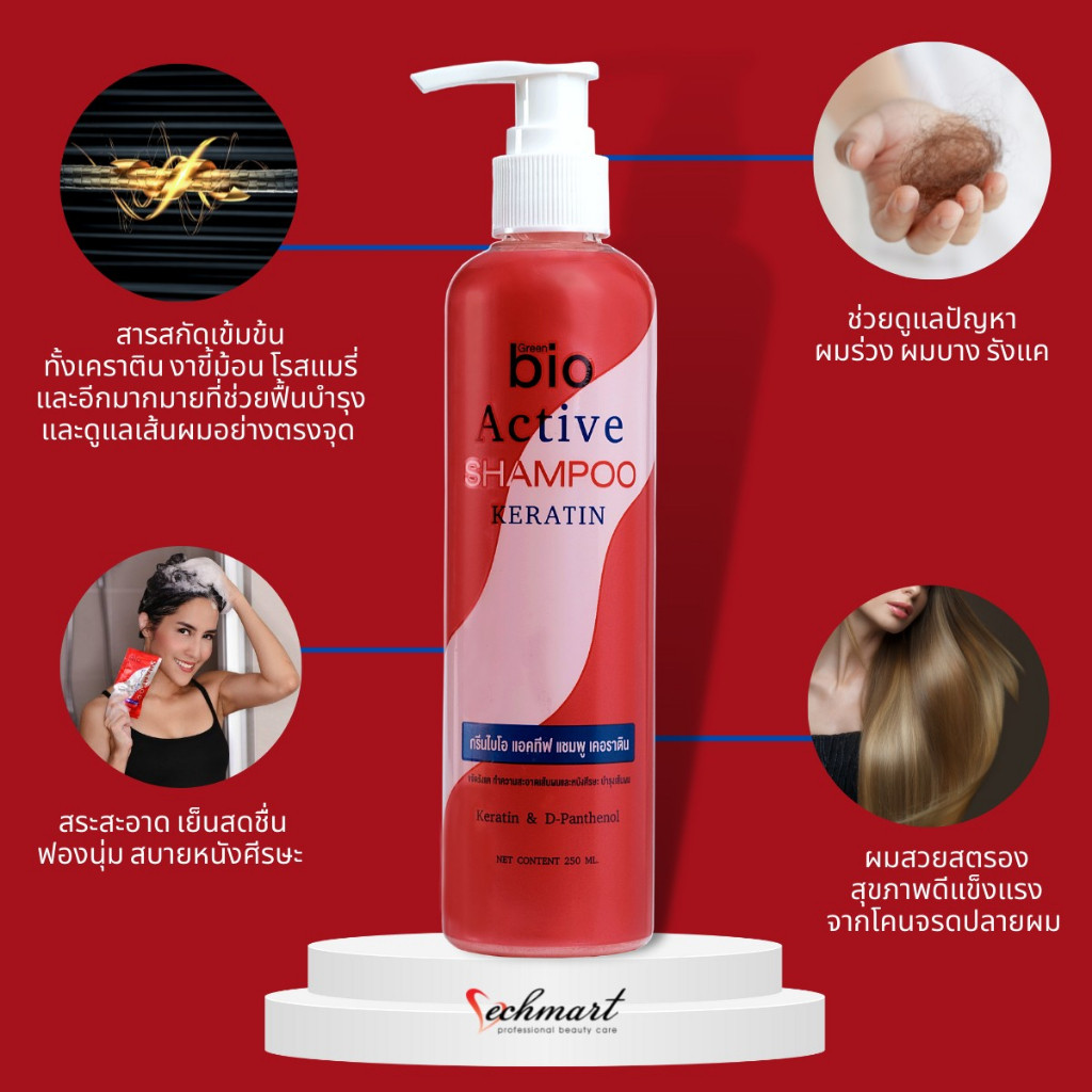 Green Bio Active Shampoo กรีนไบโอ -*แชมพูสระผม-* เคราตินขนแกะ ลดรังแค ลดผมหลุดร่วง เร่งผมยาว ผมนุ่มสลวย ขวดปั้ม 250ml