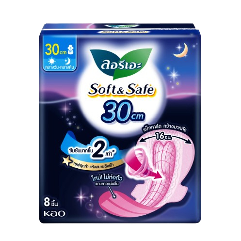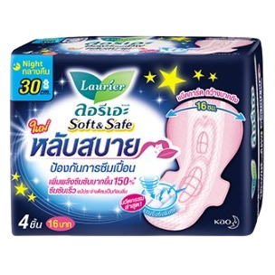 ลอรีเอะ Soft & Safe ผ้าอนามัยกลางคืน ยาว 30 ซม.**4-8 ชิ้น**