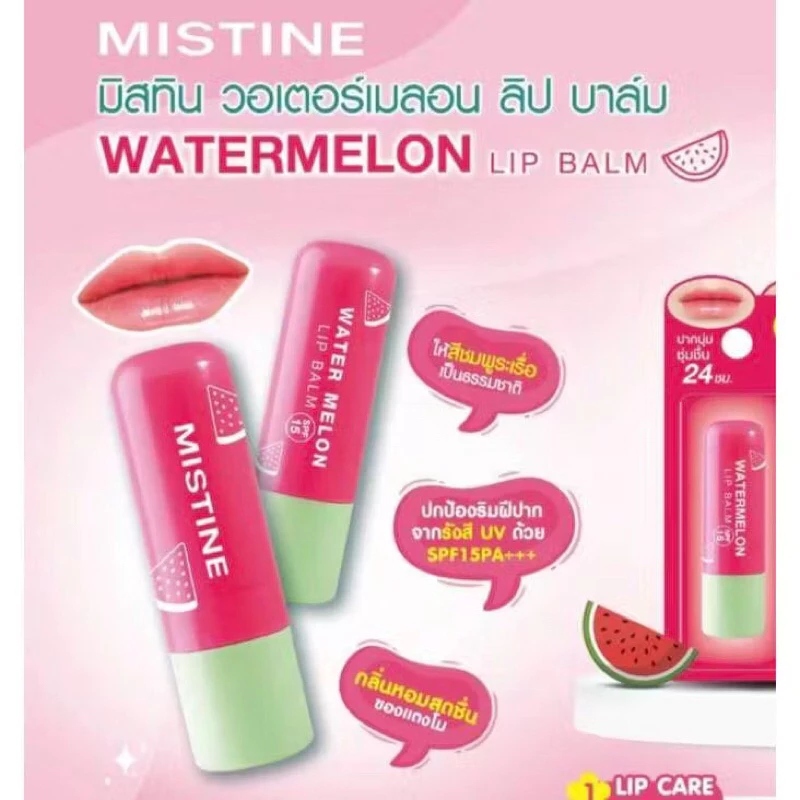 (1 แท่ง) Mistine Watermelon Lip Care - มิสทิน วอเตอร์เมล่อน ลิปแคร์ ลิปมันบำรุงปาก (2.5 g.)