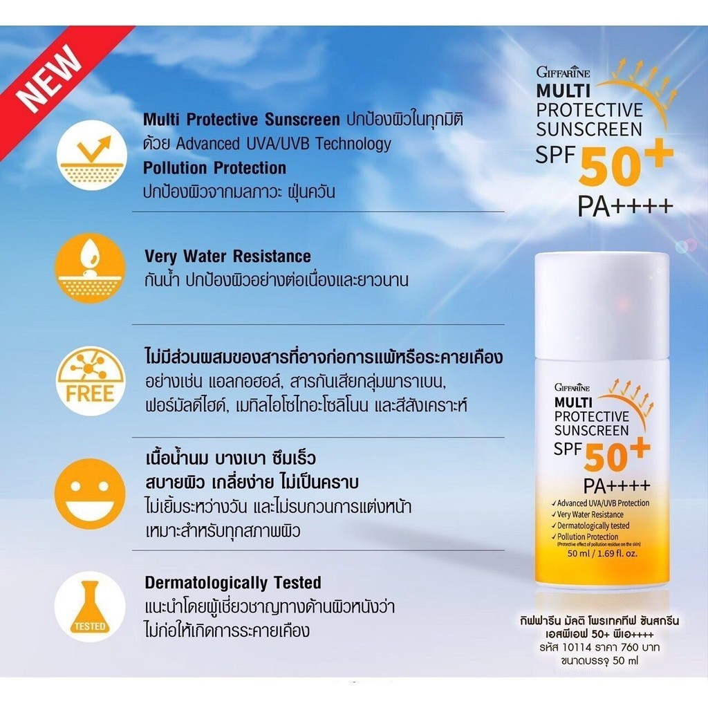 ครีมกันแดดกิฟฟารีน เนื้อน้ำนม มัลติ โพรเทคทีฟ ซันสกรีน Multi Protective Sunscreen