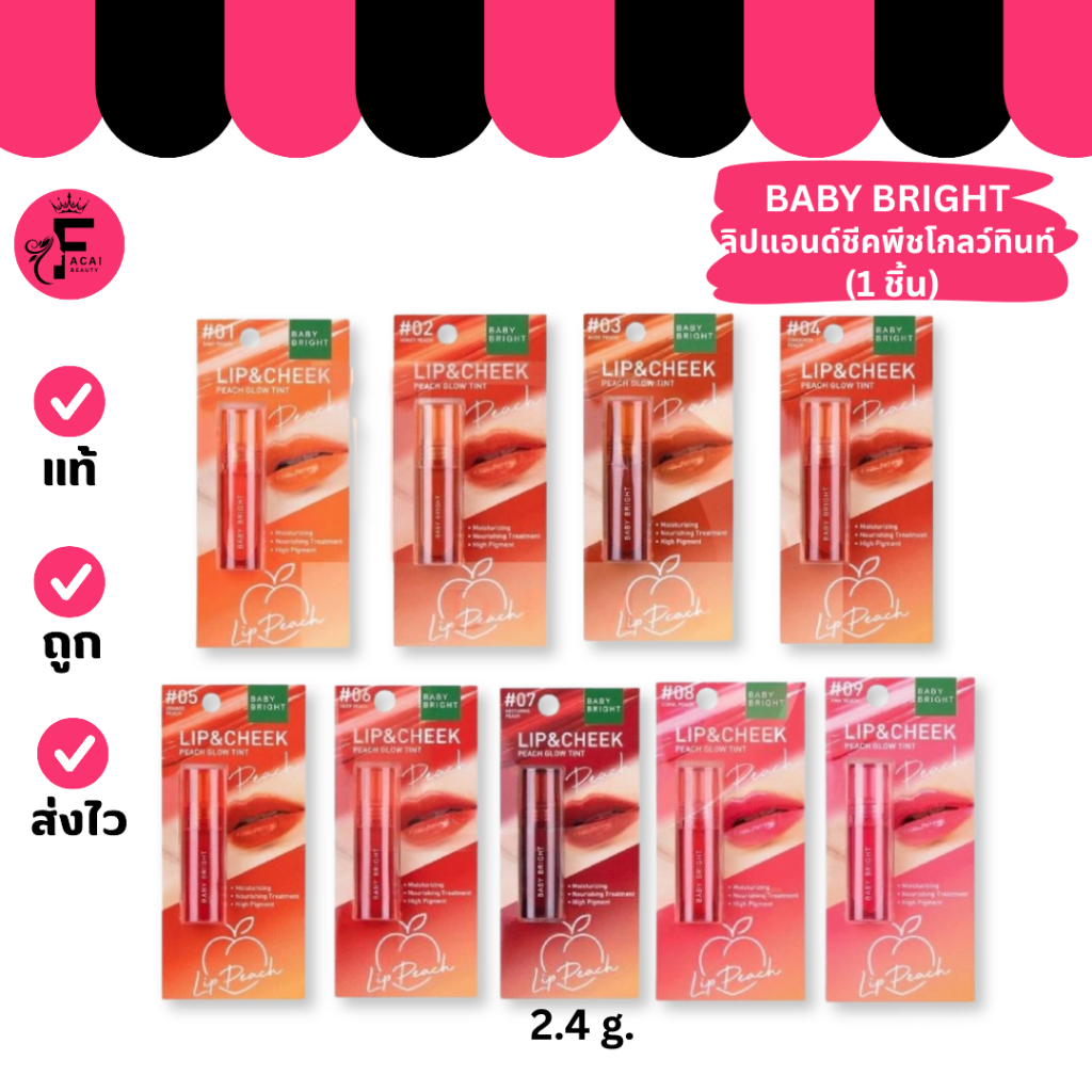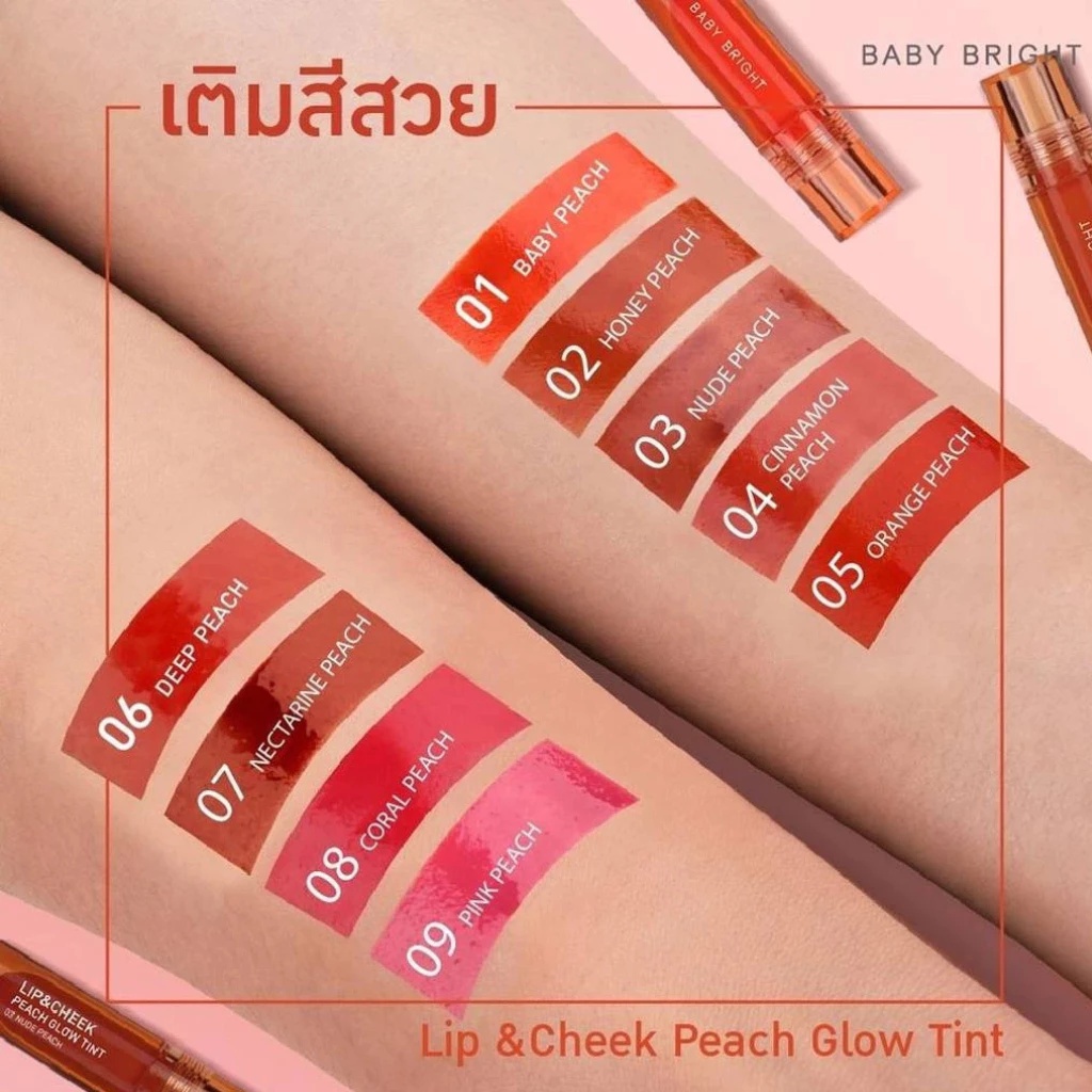 (1 แท่ง) Baby Bright ลิปแอนด์ชีคพีชโกลว์ทินท์ มี 9 เฉดสี (ปริมาณ 2.4 กรัม)