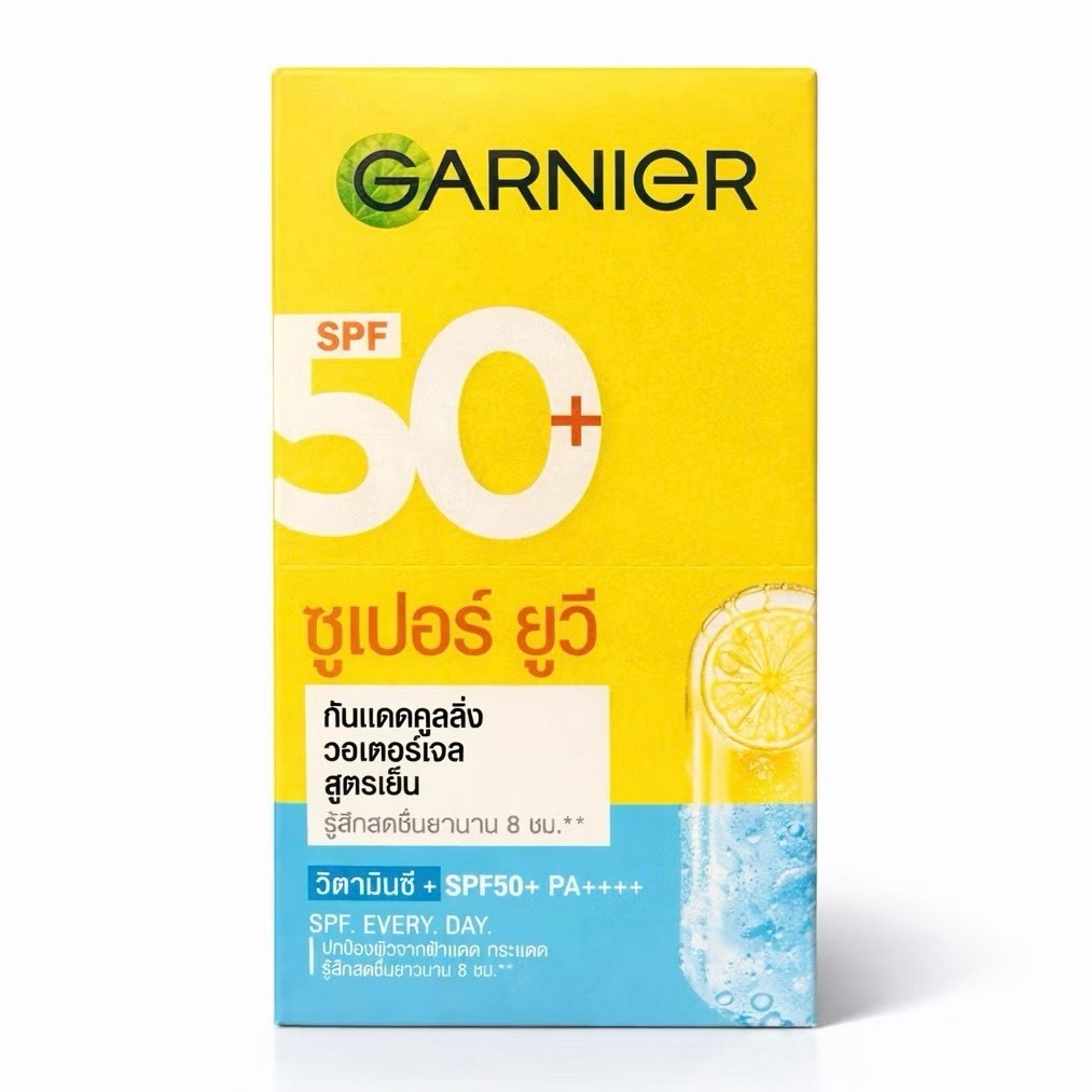 [1กล่อง6ซอง] GARNIER การ์นิเย่ ซูเปอร์ ยูวี คูลลิ่ง วอเตอร์เจล ซันสกรีน SPF50+ PA++++ แบบซอง 7กรัม