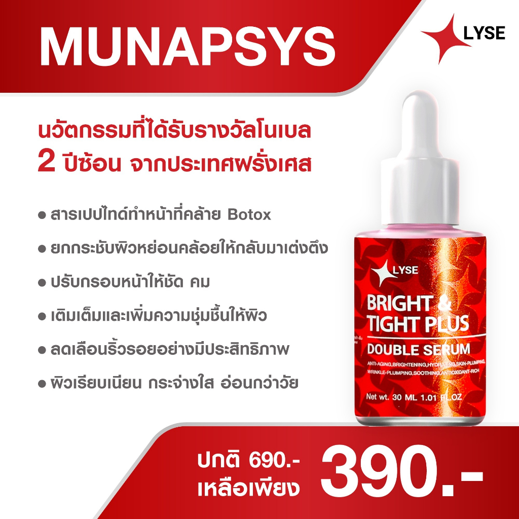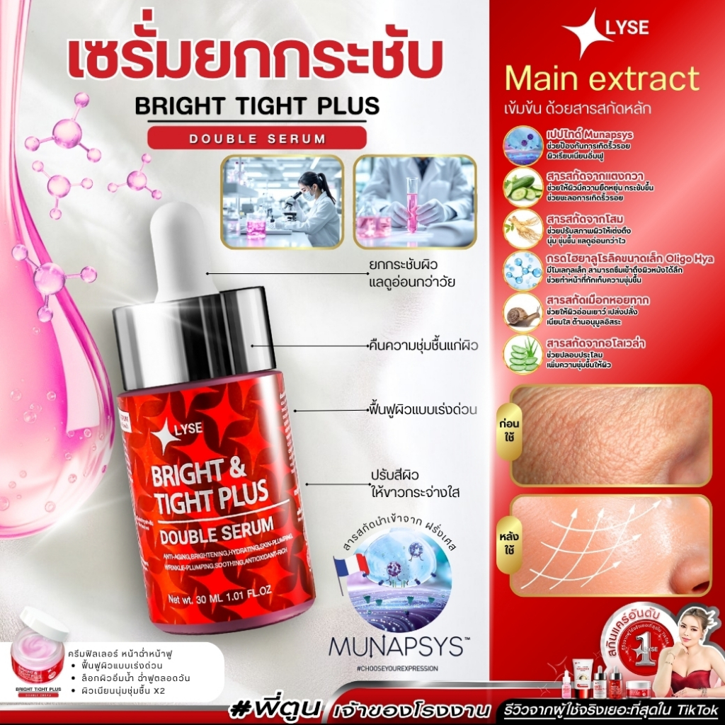 โปร 2 แถม 1 เซรั่มไบร์อัพยกกระชับ 1 ขวด ครีมฟิลเลอร์หน้าฉ่ำ 1 กระปุก แถม เซรั่มไบร์อัพขนาดพกพา 10 กรัม 1 ขวด ลิเซ่ LYSE