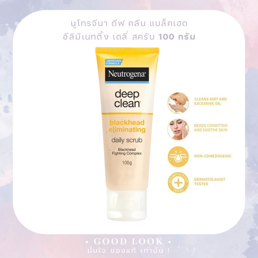 ล็อตใหม่ NEUTROGENA นูโทรจีนา ดีฟ คลีน แบล็คเฮด อีลิมิเนทติ้ง เดลี่ สครับ 100 กรัม