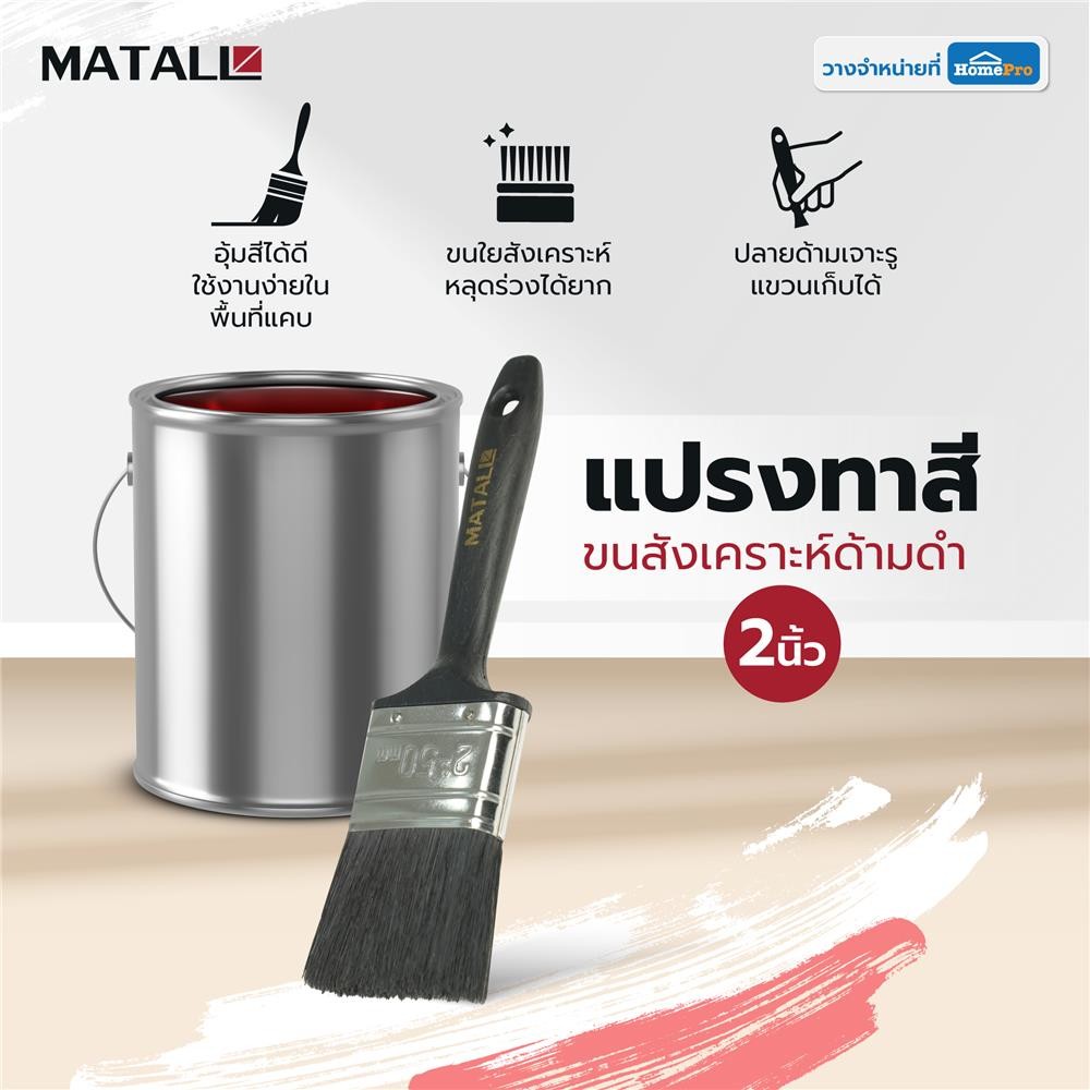 MATALL แปรงทาสีขนสังเคราะห์ด้ามดำ PB046 2 นิ้ว จัดส่งโดย HomePro