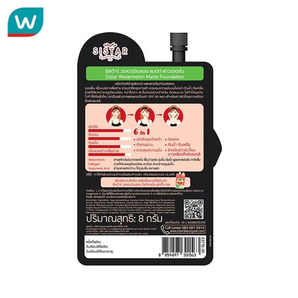 Sistar ซิสต้าร์ วอตเตอร์เมลอน แมท ฟาวน์เดชั่น SPF50 PA++ 8ก