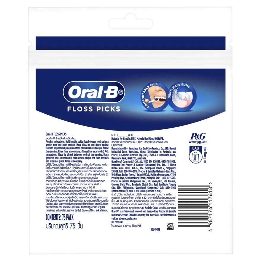 ออรัล-บี ไหมขัดฟัน ชนิดด้ามจับ แพ็ค 75 ชิ้น/Oral-b floss picks 75 pcs.