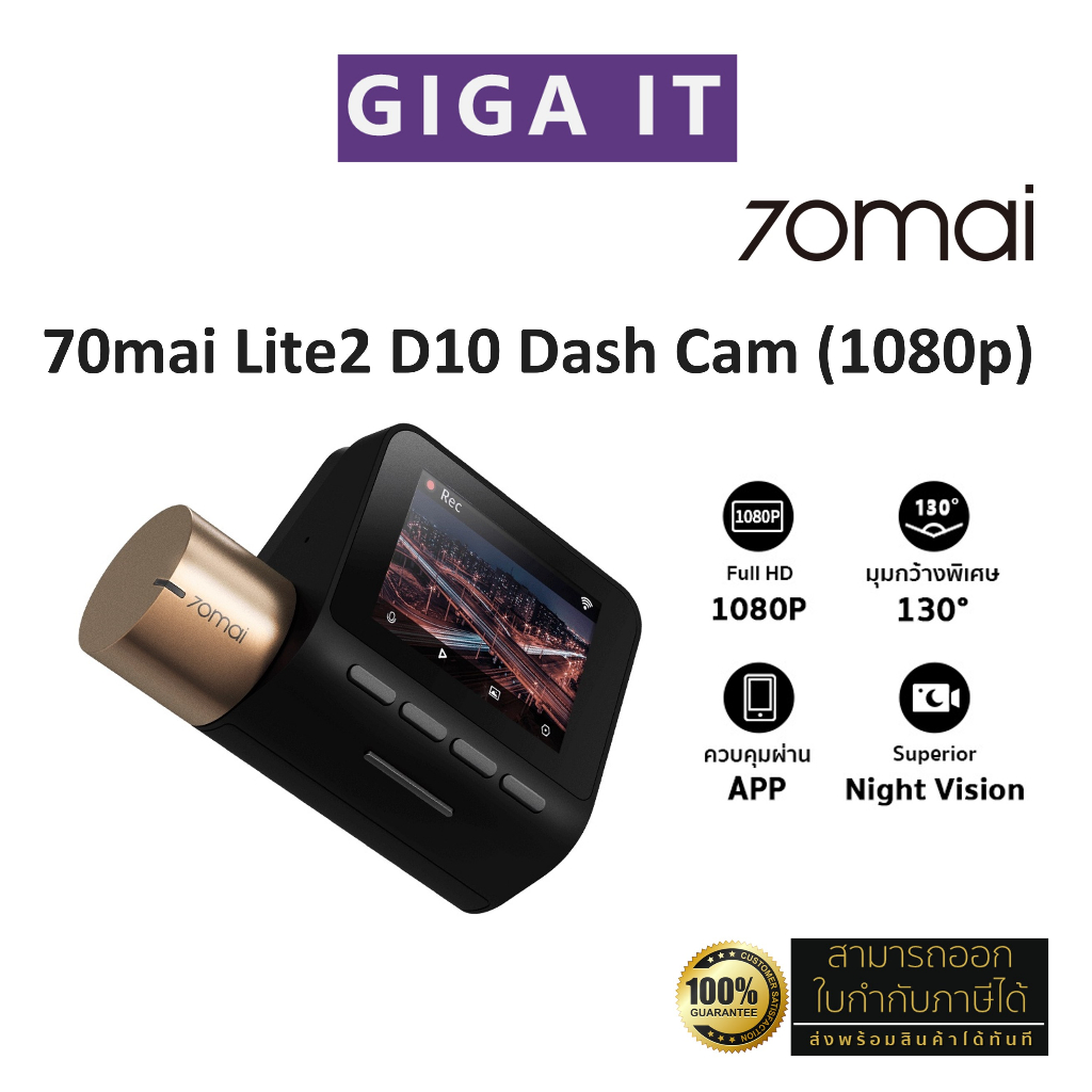 70Mai Dash Cam Lite 2 D10 กล้องติดรถยนต์อัฉริยะ 1080P, 130 ° องศามุมกว้าง การมองเห็นได้ในเวลากลางคืน ประกันศูนย์แท้ 1 ปี