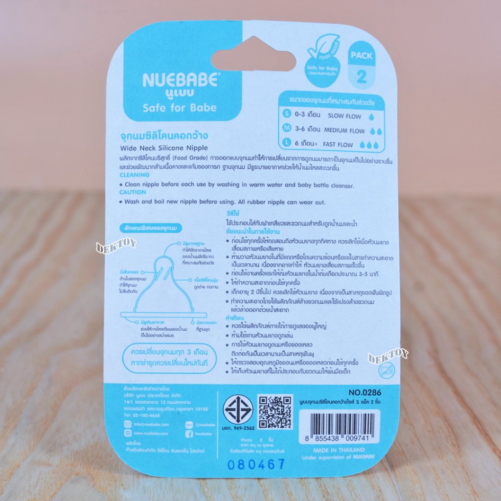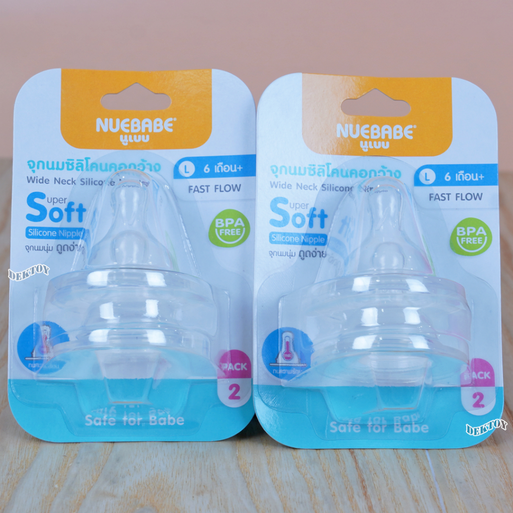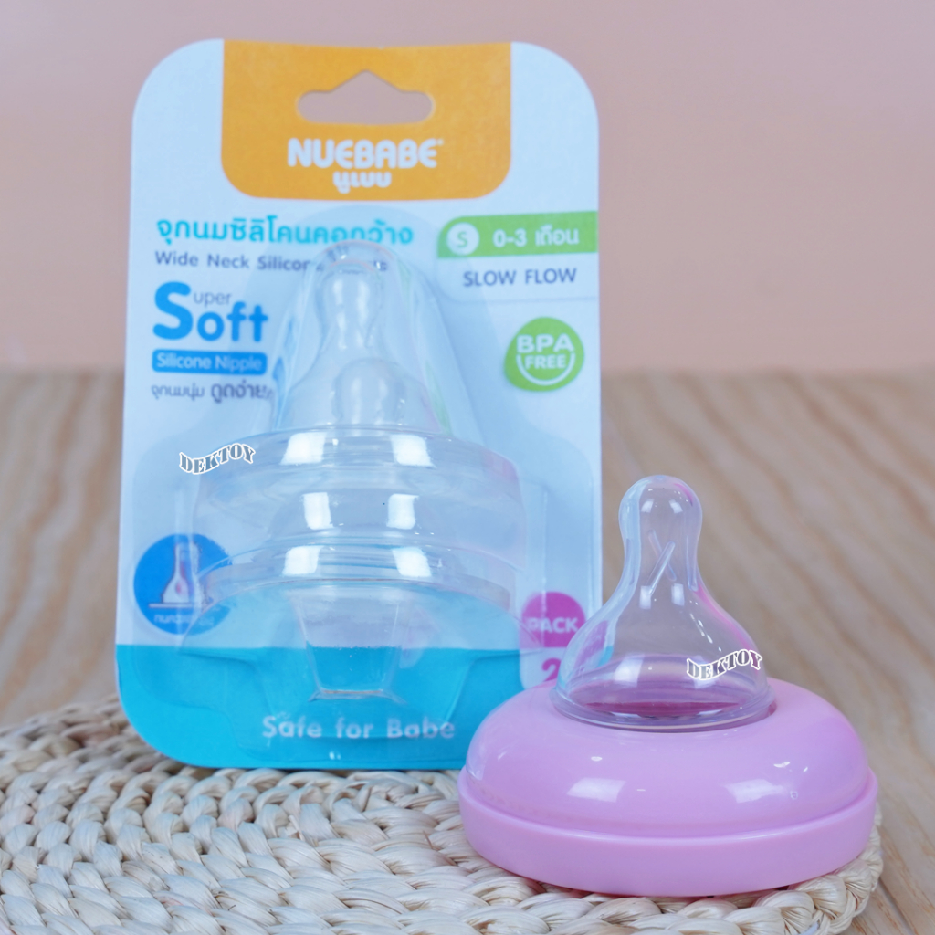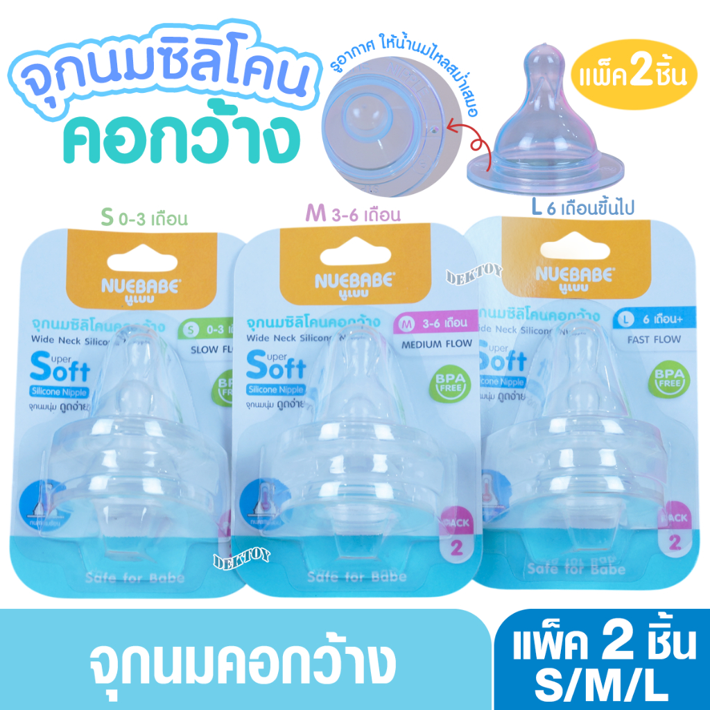 คอกว้าง Nuebabe นูเบบ จุกนมซิลิโคนจุกนุ่ม ดูดง่าย แพ็ก 2 ชิ้น คอกว้าง (ไซส์ S ,M ,L)