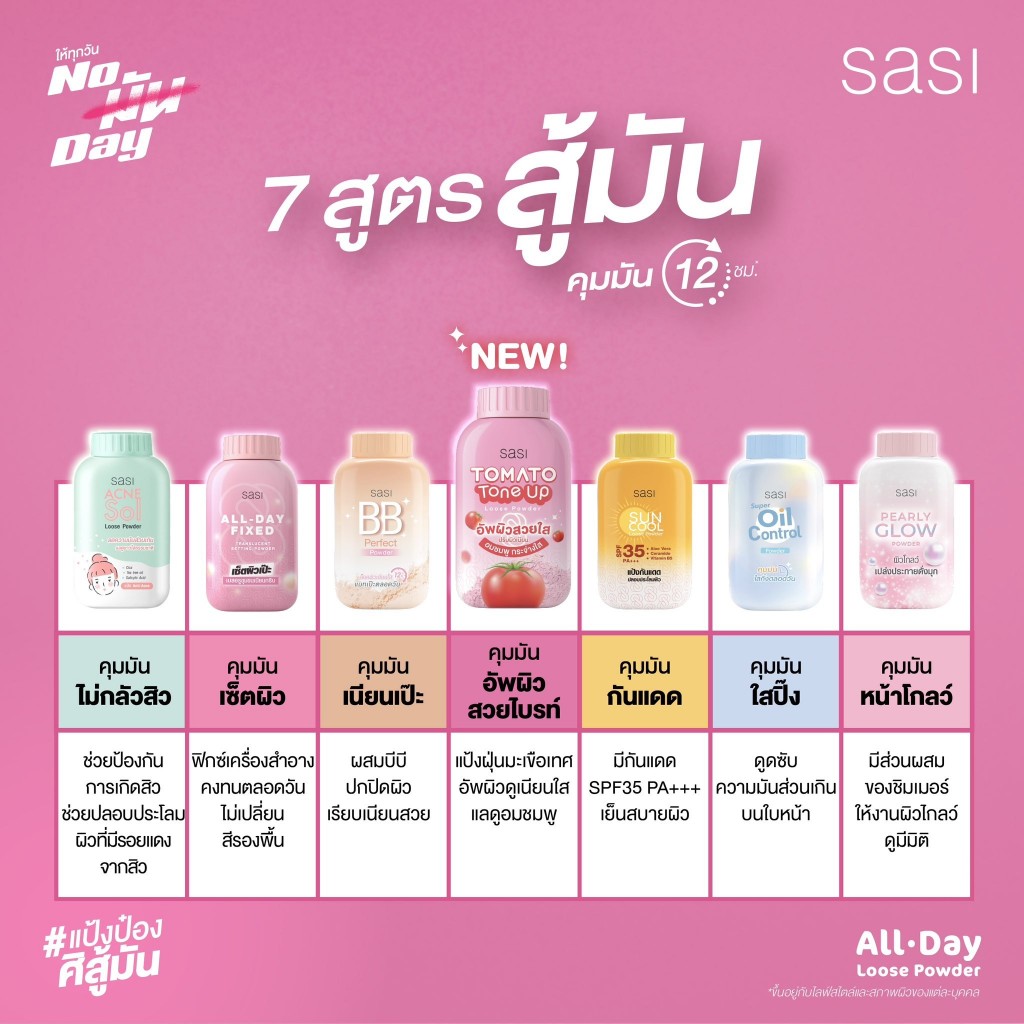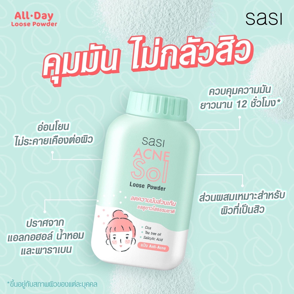 (แป้งฝุ่นกระป๋อง) Sasi ศศิ แป้งฝุ่น ( แอคเน่,โกลว์,บีบี,ออยล์คอนโทรล,ซันคูล ) 50กรัม