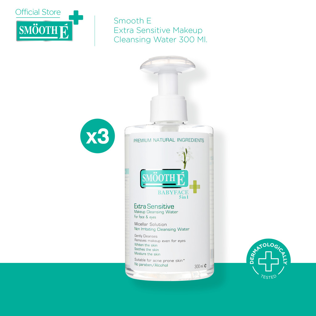 [แพ็ค 3] Smooth E Extra Sensitive Makeup Cleansing Water 300 Ml. สมูทอี คลีนซิ่ง ล้างเครื่องสำอาง สิ่งสกปรก