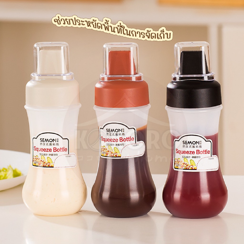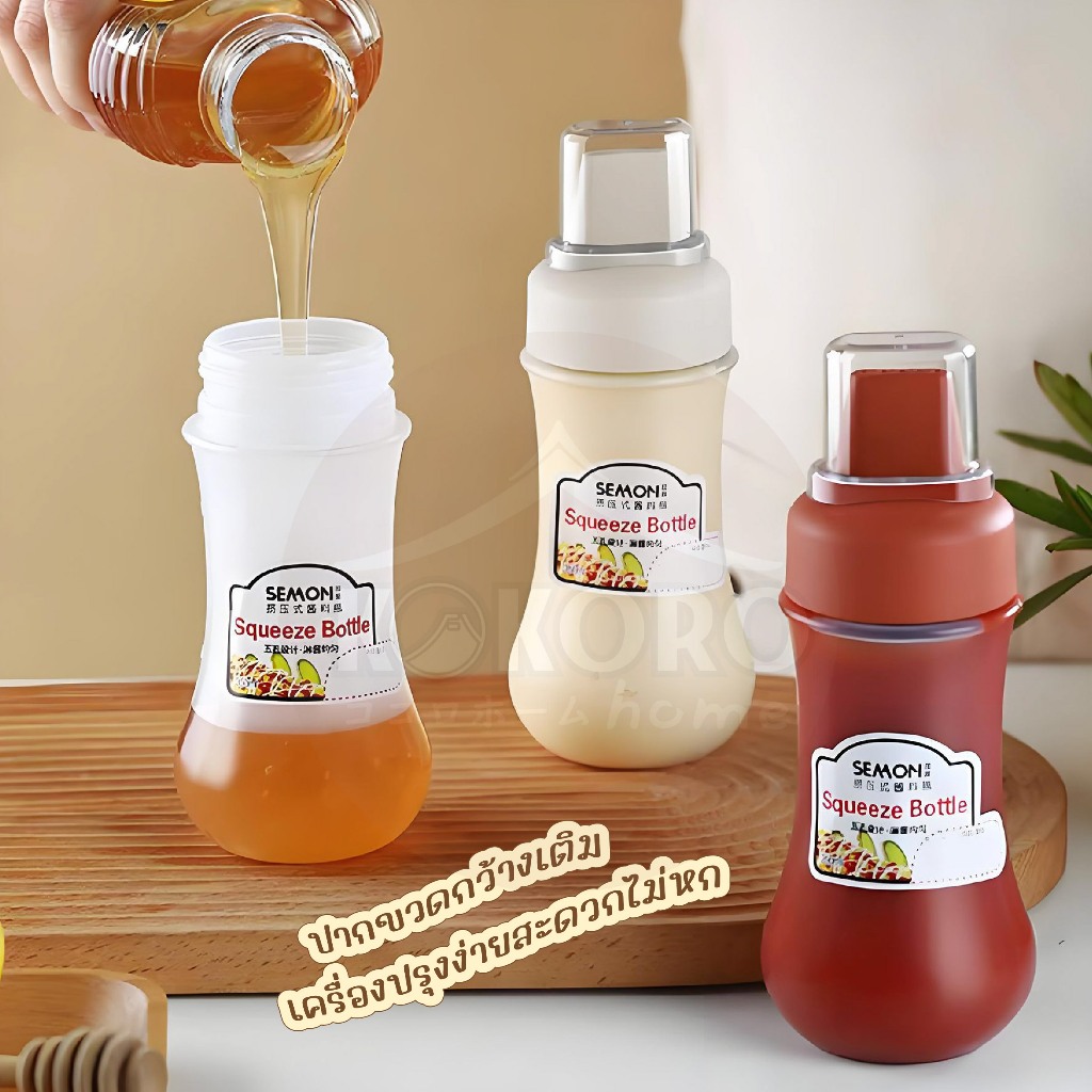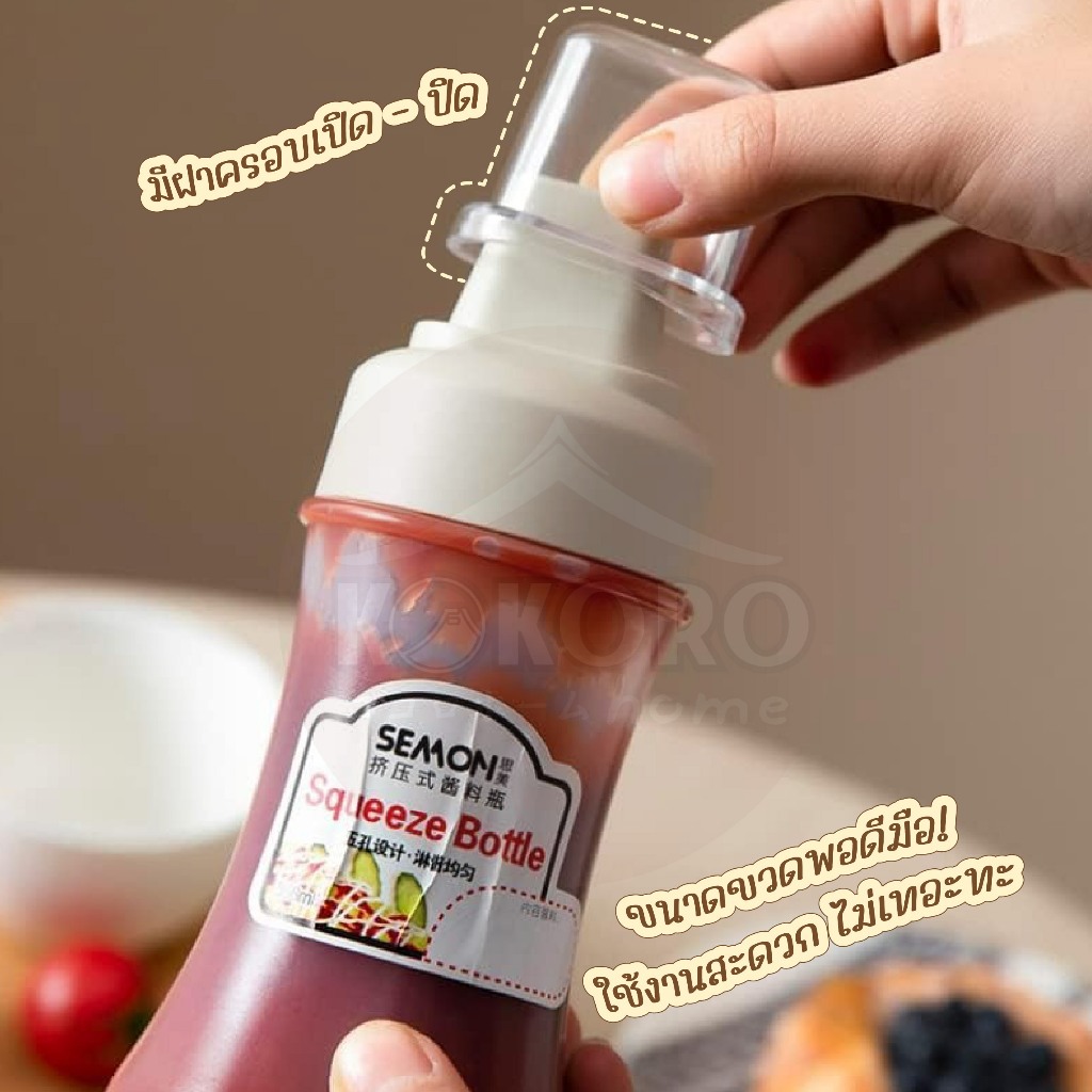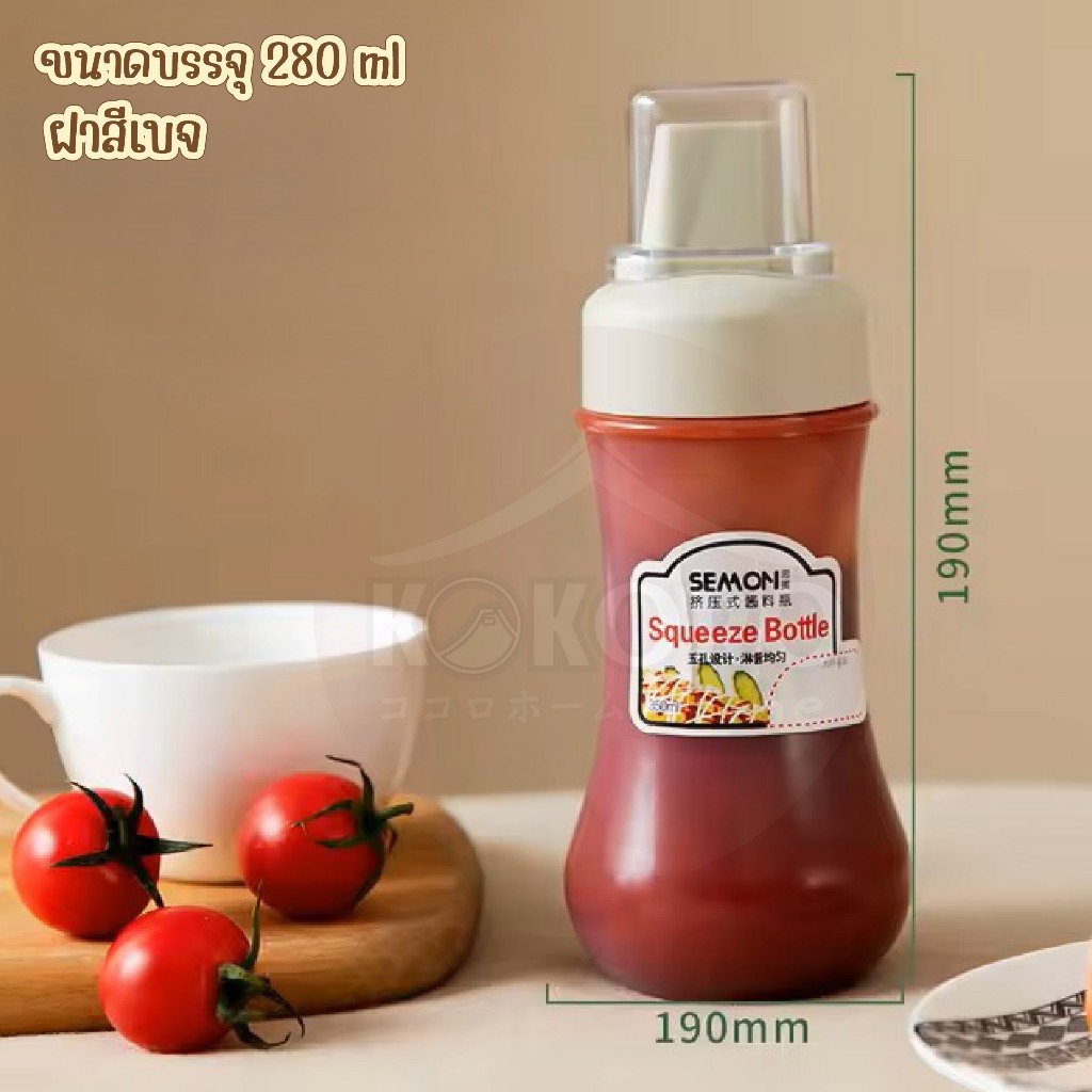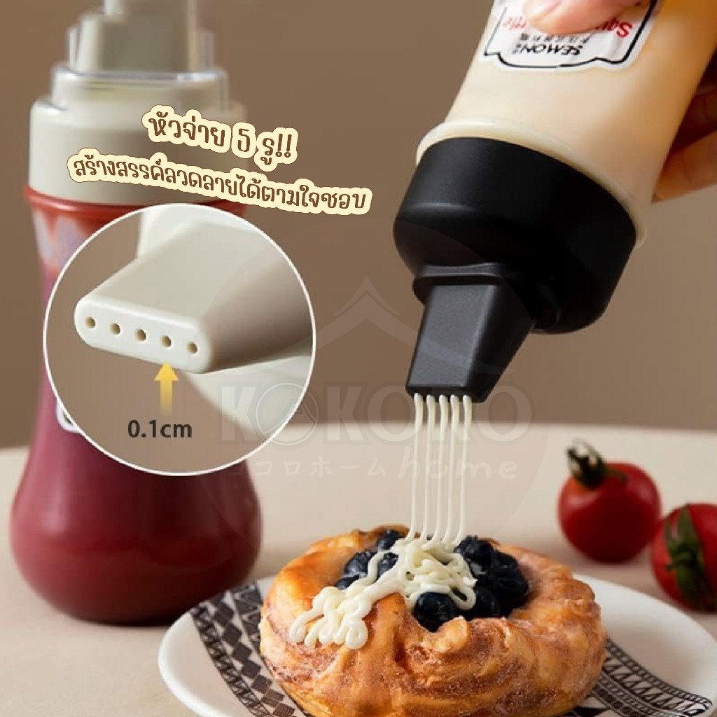 [ส่งด่วน 2 ชม.] Kokoro Home ขวดบีบซอส 5รู พร้อ มสติกเกอร์เขียนได้ ขวดบีบอเนกประสงค์ 280 ml ขวดบีบนมข้น ขวดใส่ซอส MB282