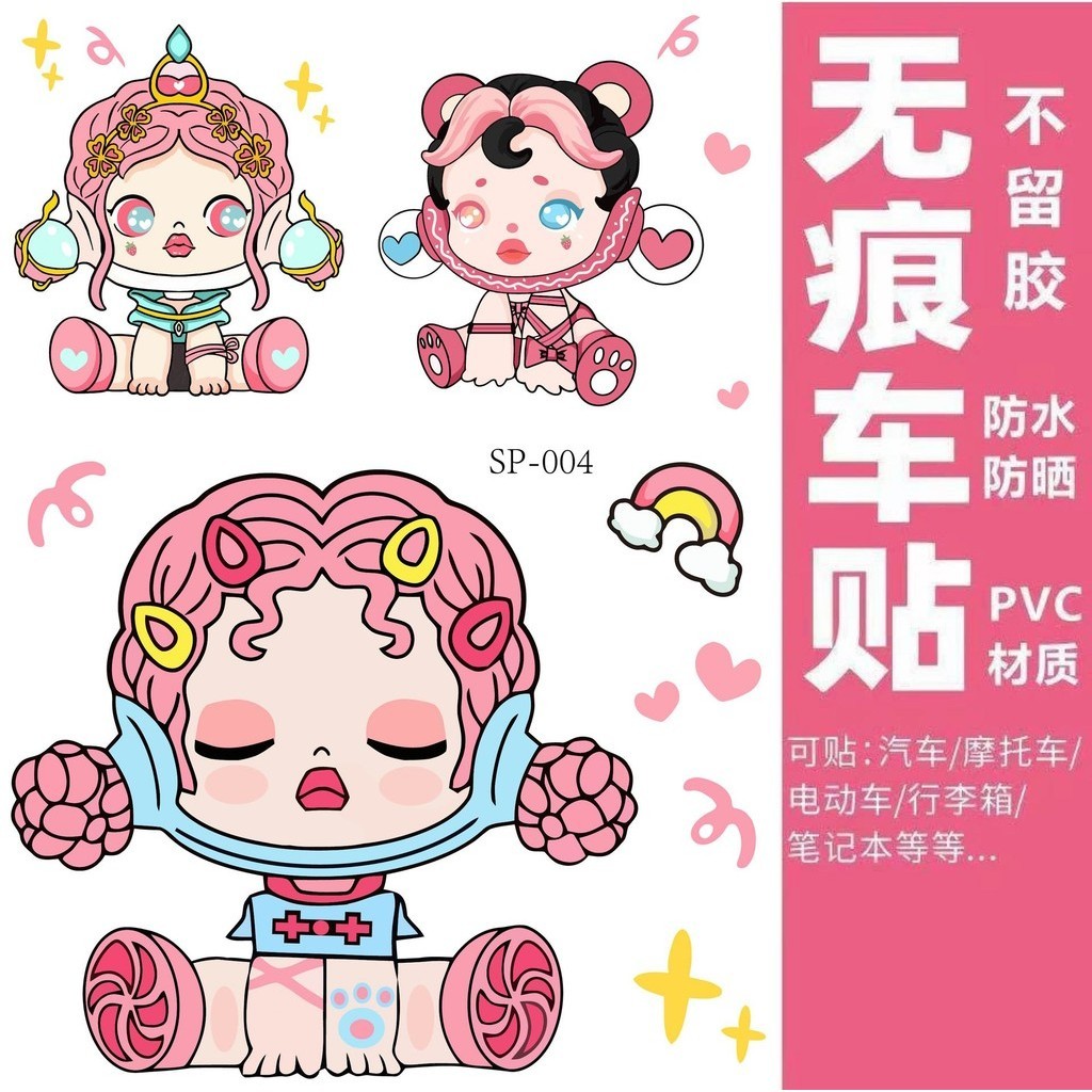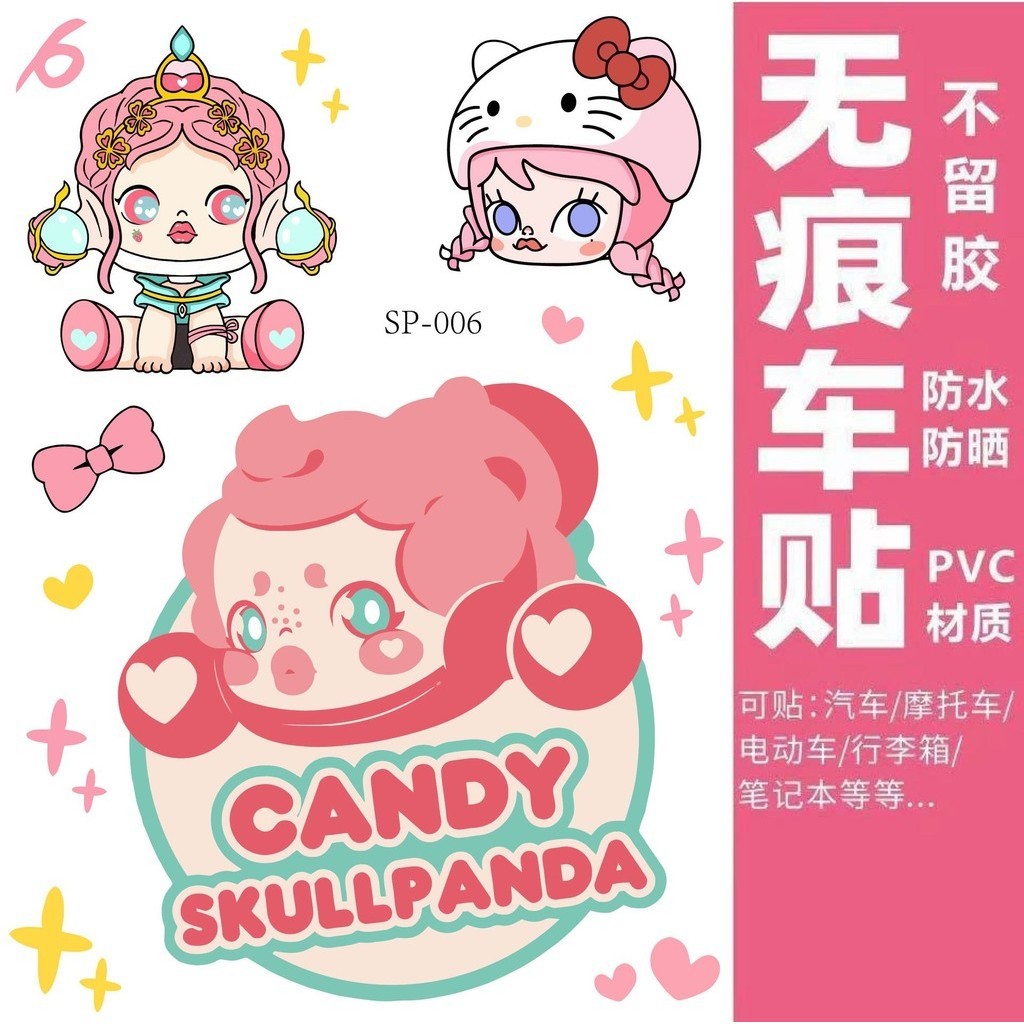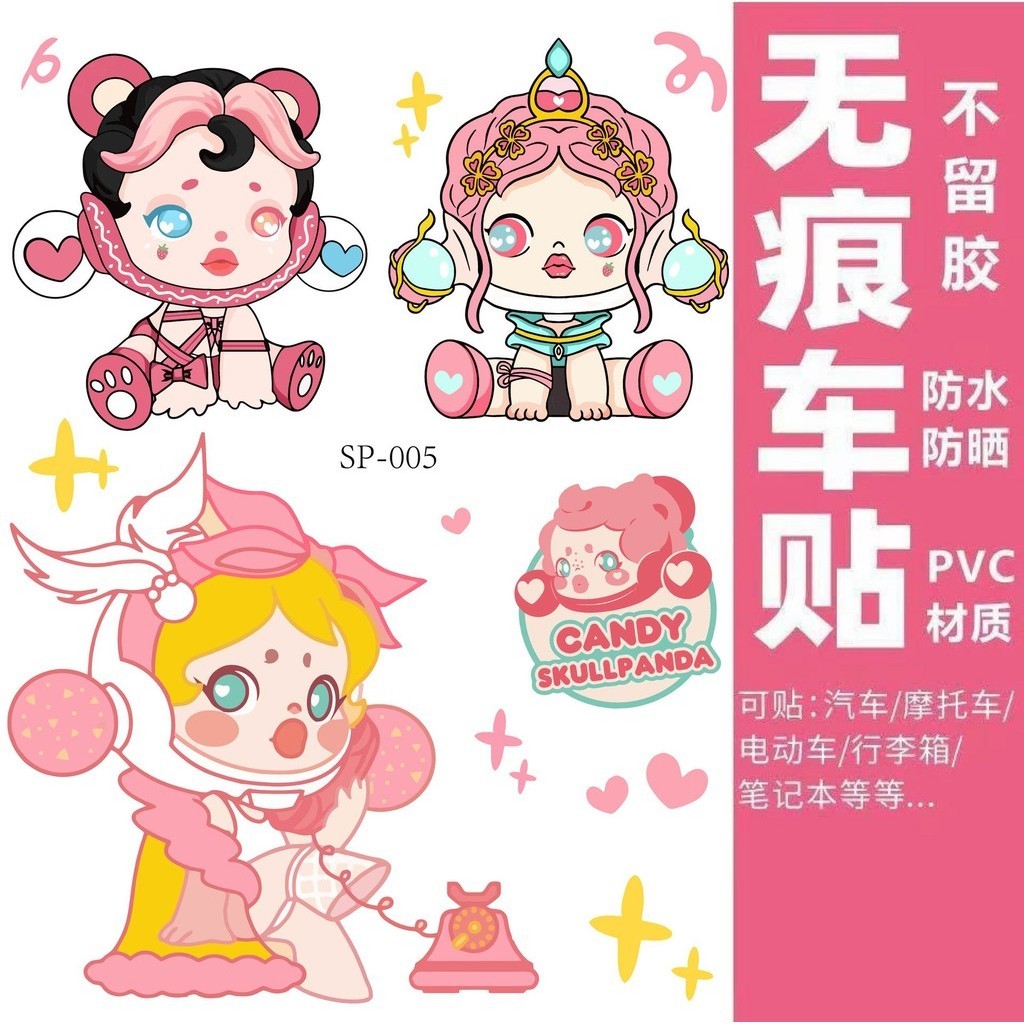 Popmart Car Stickers Waterproof Cute Cartoon Stickers Pop Motorcycle Stickers SKULL PANDA Car Decorative Stickers