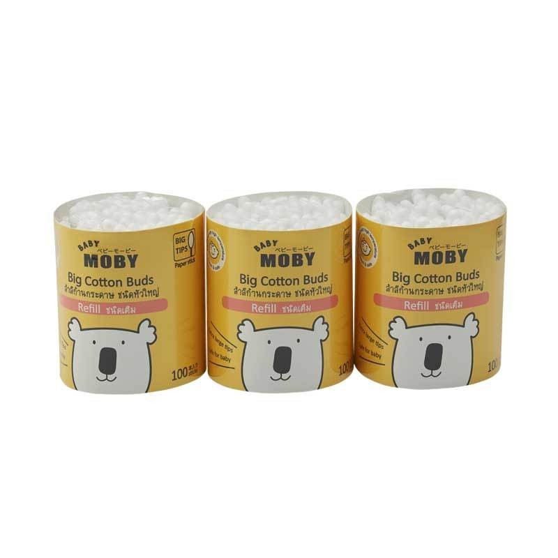Baby Moby เบบี้ โมบี้ สำลีก้านกระดาษ คอตตอนบัด หัวเล็ก/หัวใหญ่ รีฟิวคอตตอนบัต ทำจากฝ้ายแท้ 100%