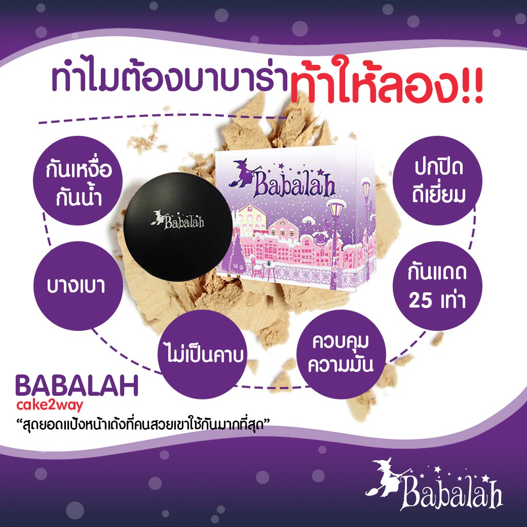 (ตลับจริง) แป้ง Babalah มี 2 เบอร์ แป้งบาบาร่า คุมมัน ปกปิด กันน้ำ แป้งพัฟ แป้งแข็ง
