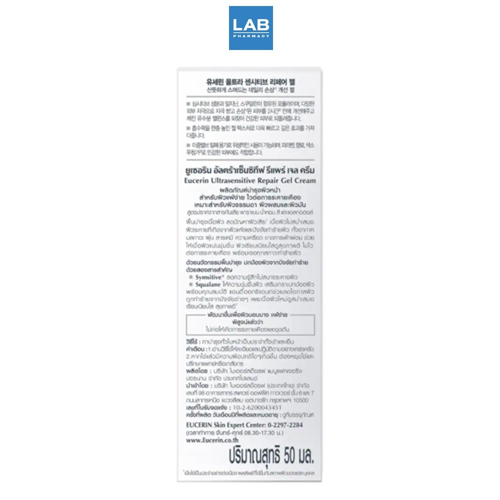 Eucerin Ultrasensitive Repair Gel - Cream 50 ml. - เจลครีมรักษาสิวผด ช่วยฟื้นฟูผิวที่อ่อนแอ แพ้ง่าย