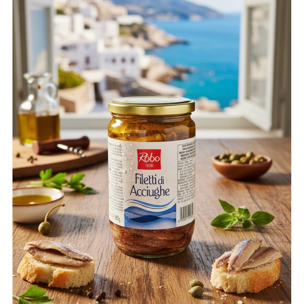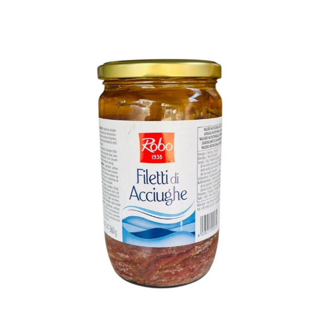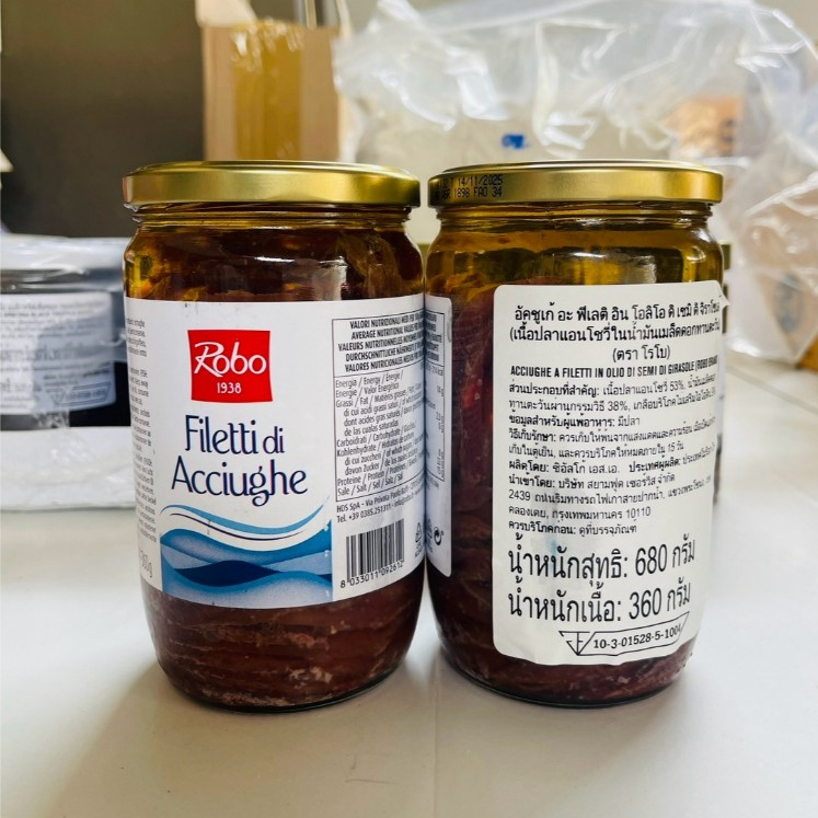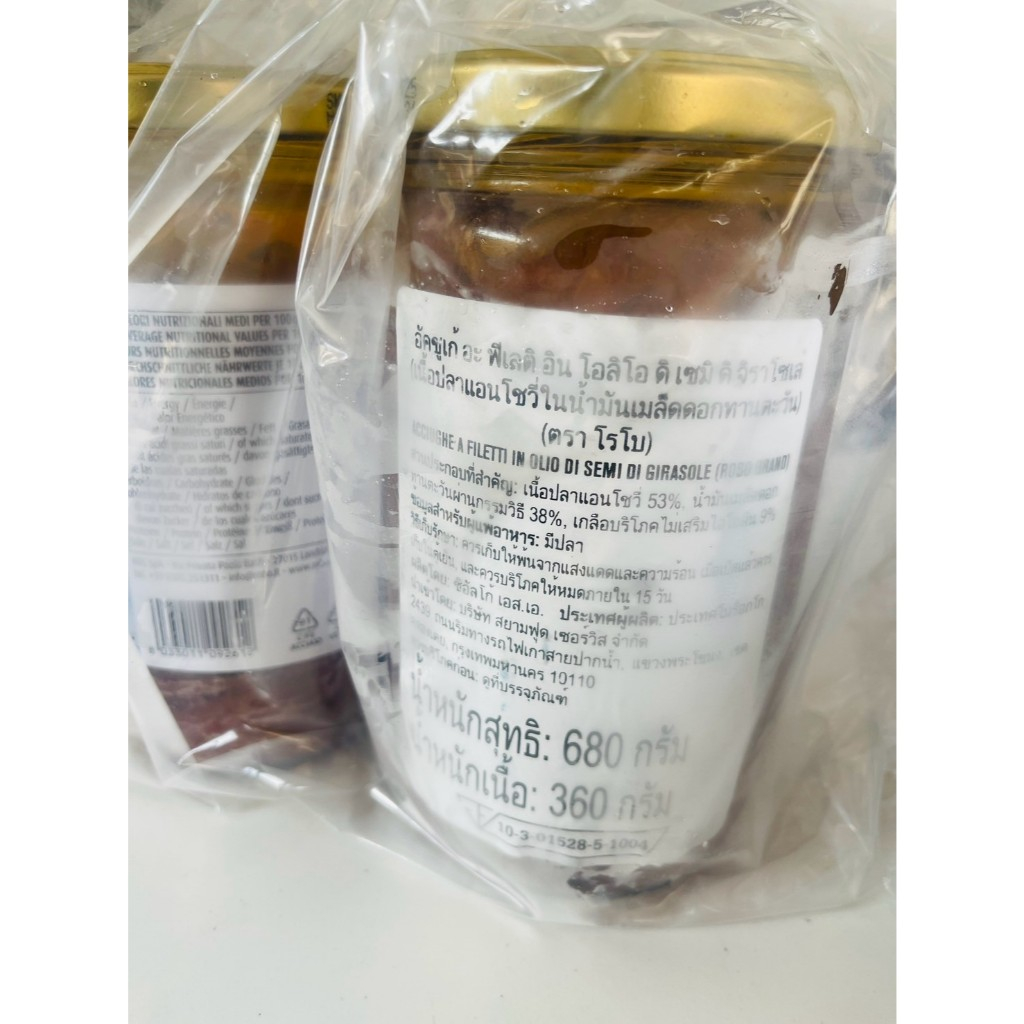 โรโบ ปลาแอนโชวี่ ในน้ำมันเมล็ดทานตะวัน ROBO ANCHOVY FILLE IN SUNFLOWER OIL ขนาด 680 กรัม