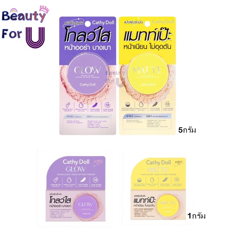 Cathy Doll Translucent Loose Setting Powder Glow/Matte 5g./1g. แป้งฝุ่นเนื้อละเอียด มี 2 สูตร 2ขนาด