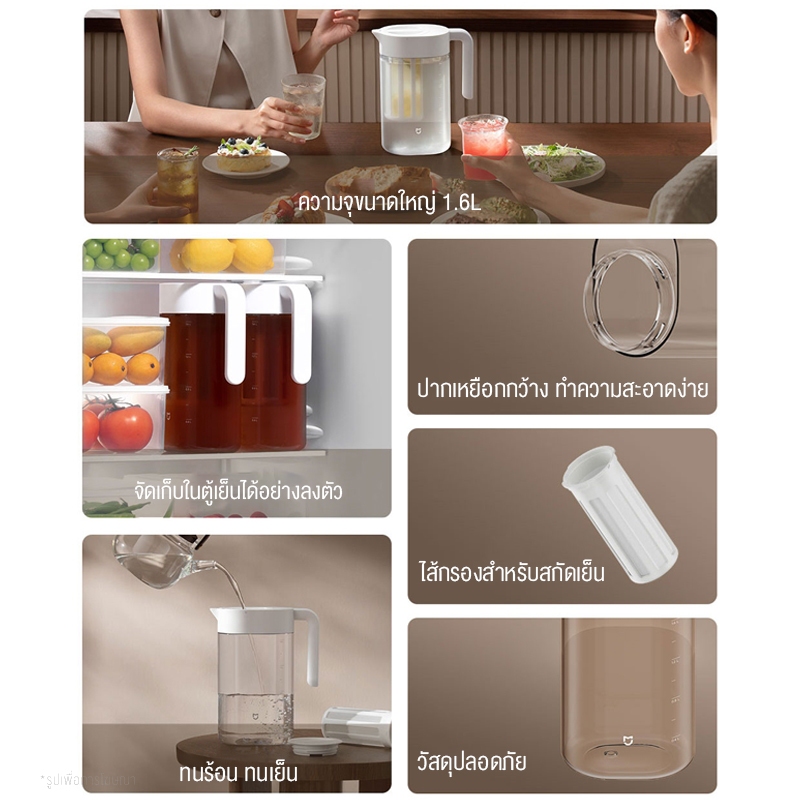 Xiaomi Cold Water Kettle เหยือกน้ำเย็น เหยือกน้ำสไตล์ญี่ปุ่น จุปริมาณได้เยอะ 1.6L เนื้อหนาทนทาน ขวดน้ําขนาดใหญ่