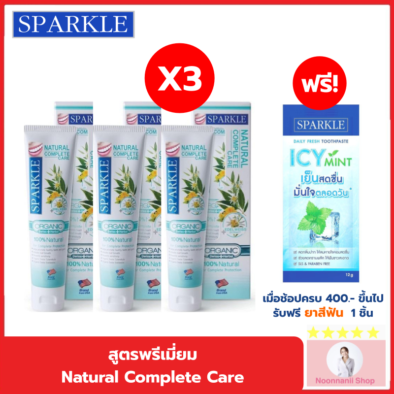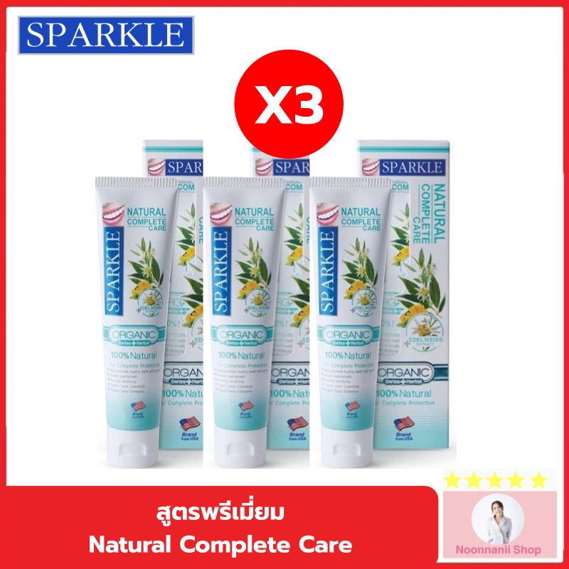 [แพ็ค 3] Exp 05/2026 SPARKLE ยาสีฟัน สูตร Natural Complete Care 100 g. ดูแลเหงือกและฟัน