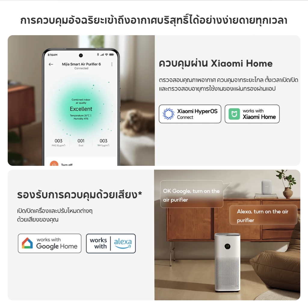 [NEW] Xiaomi Air Purifier 6 ระบบเซ็นเซอร์ 5 ตัวที่อัปเกรดแล้ว ระบบฟอกอากาศแบบคอมโพสิต 5 ชั้น จอ LCD สี