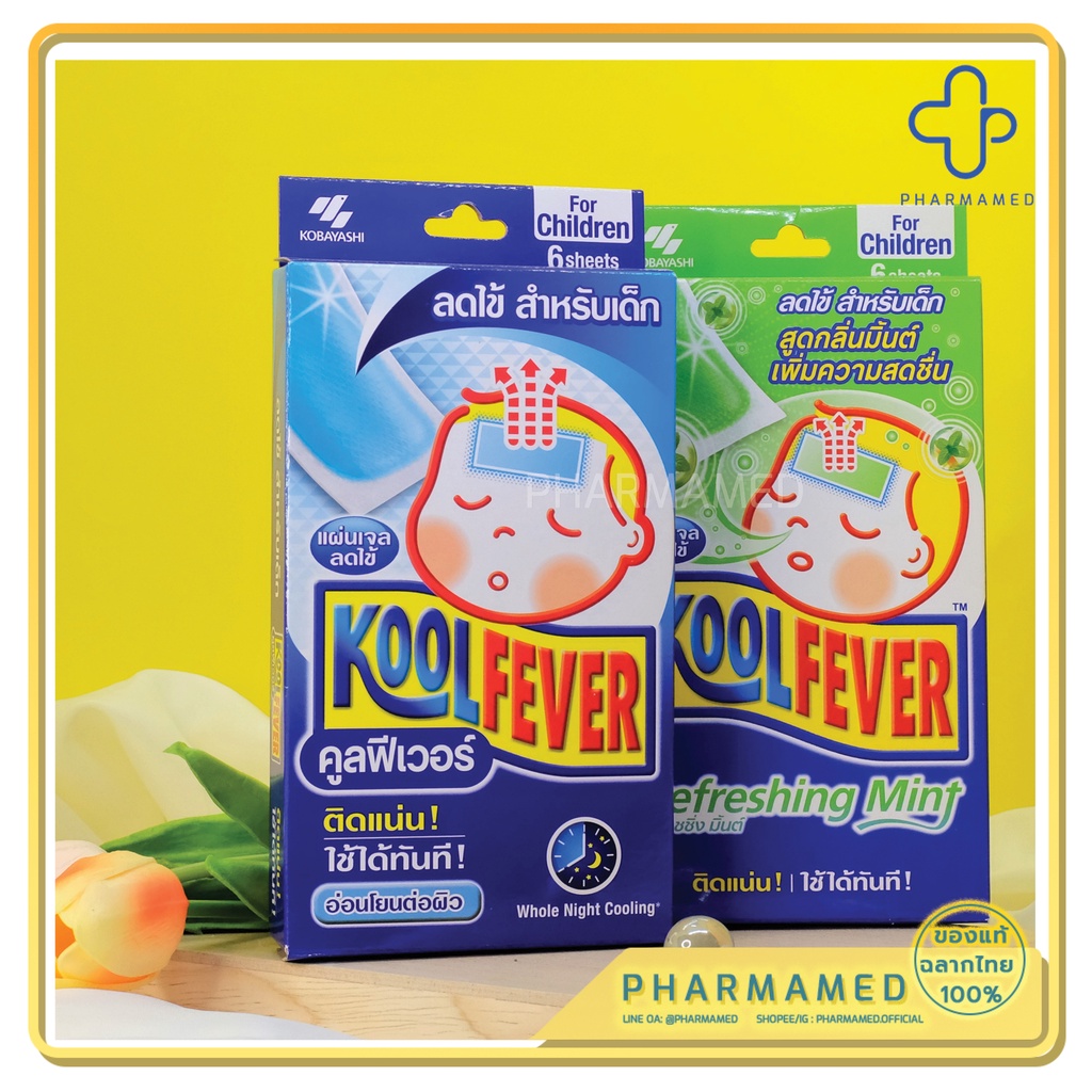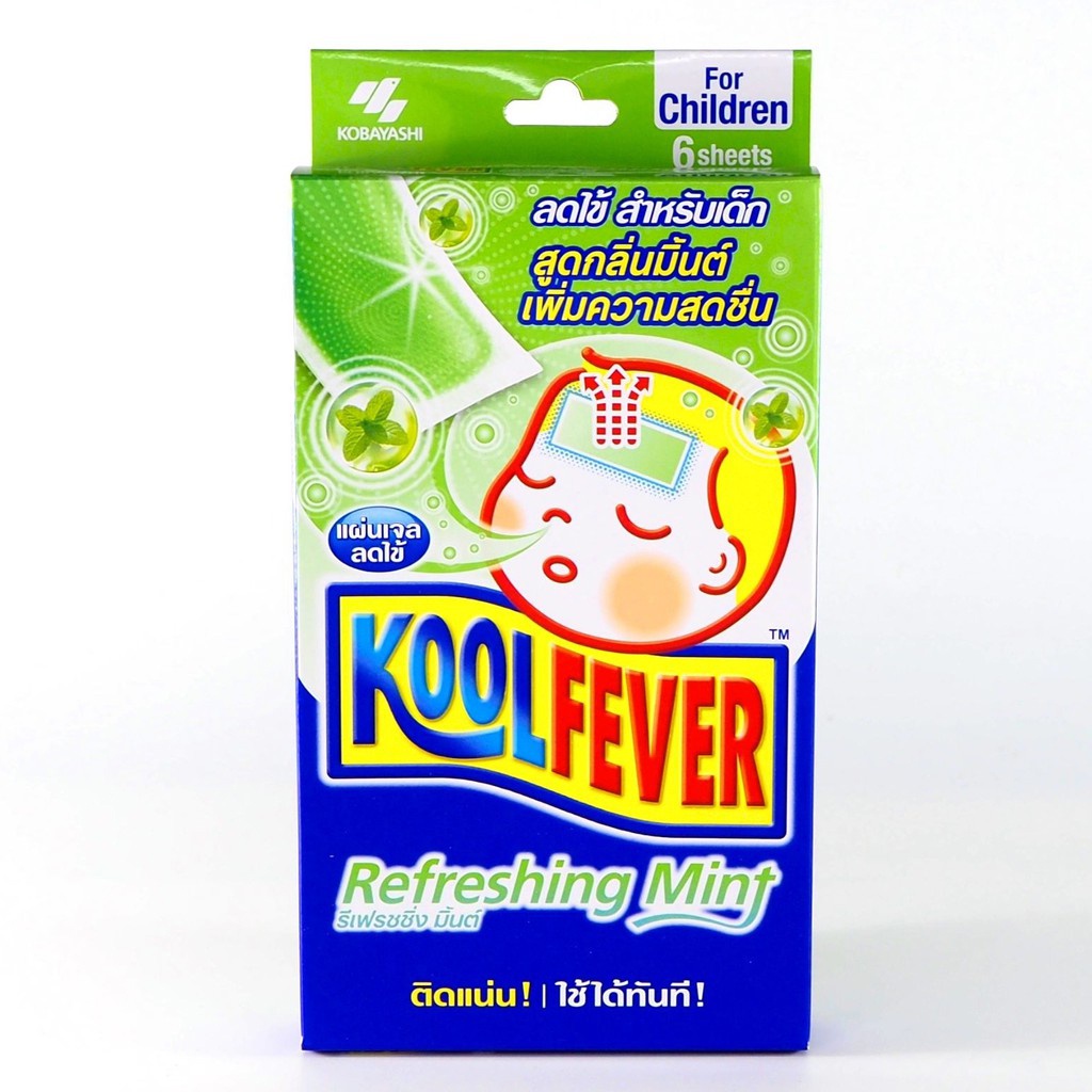 Kool Fever For children แผ่นเจลลดไข้ สำหรับเด็ก มีกล่องสีเขียว กล่องสีน้ำเงิน ธรรมดา / KOOLFEVER REFRESHING MINT
