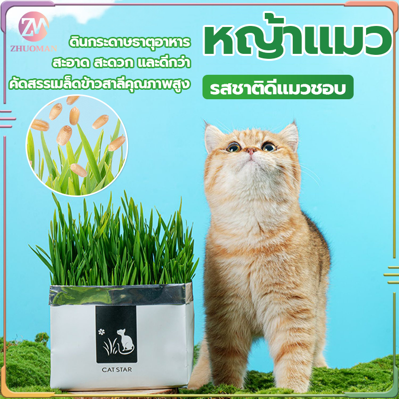 ข้าวสาลีแมว หญ้าแมว หญ้าแมวชุดพร้อมปลูกต้น ต้นอ่อนข้าวสาลี ต้นข้าวสาลีแมว เสริมสร้างภูมิคุ้มกัน ลดกลิ่นมูลสัตว์เลี้ยง