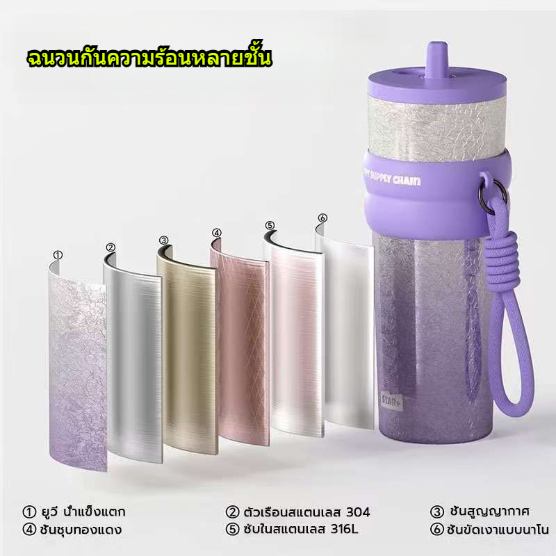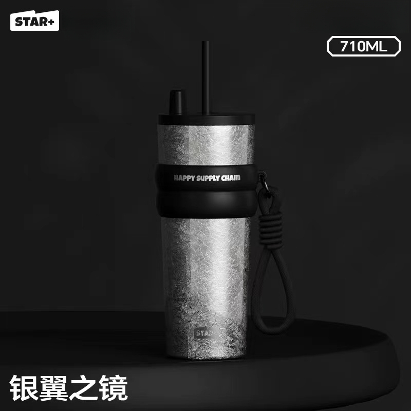【STAR+】316 ถ้วยเก็บความร้อนสแตนเลส,ถ้วยน้ำในรถยนต์ความจุขนาดใหญ่,ถ้วยฟาง,แก้วกาแฟ 710ml