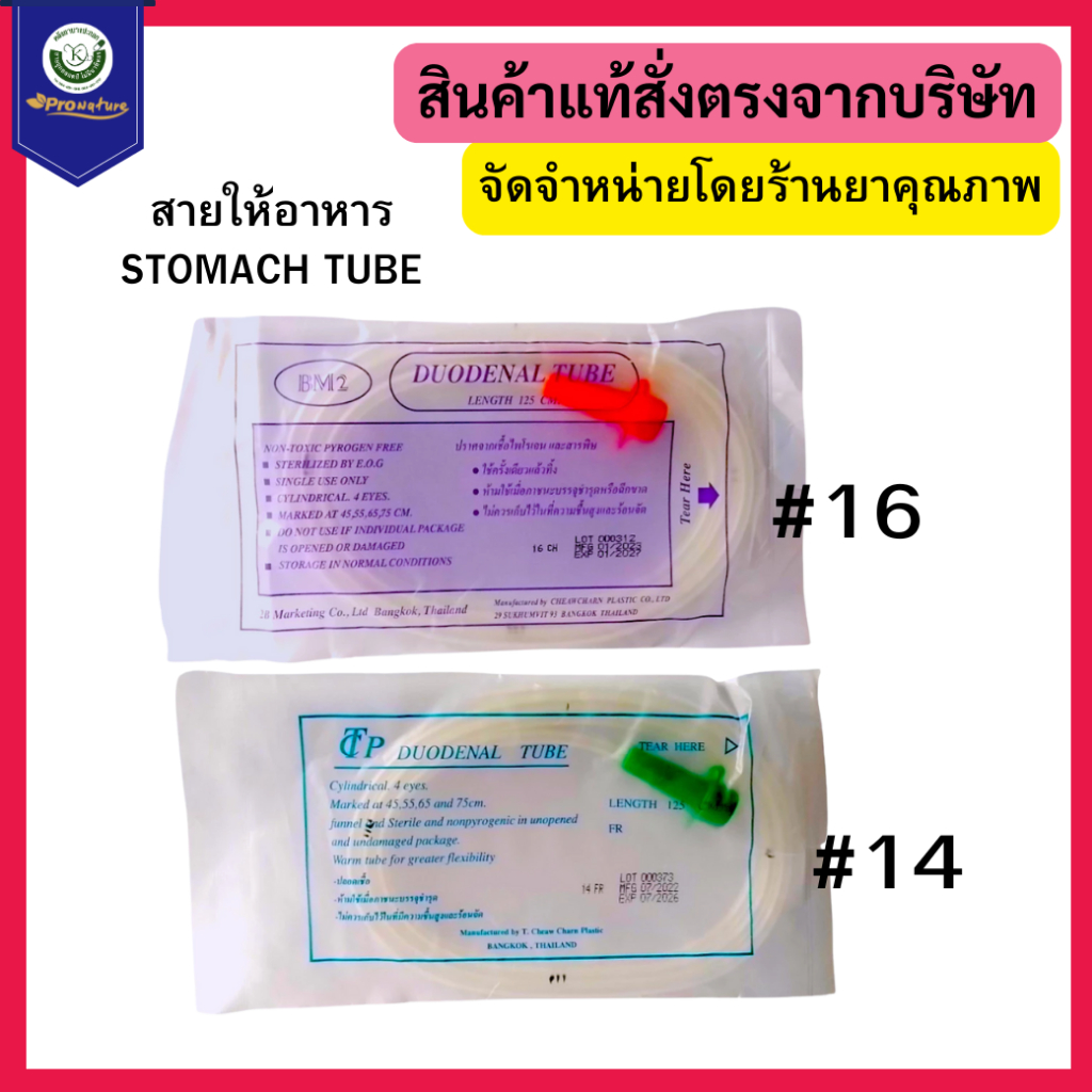 สายให้อาหารทางจมูก STOMACH TUBE มี2 ขนาด #14(Exp. 5/29) #16 (Exp.6/29) สำหรับผู้ใหญ่