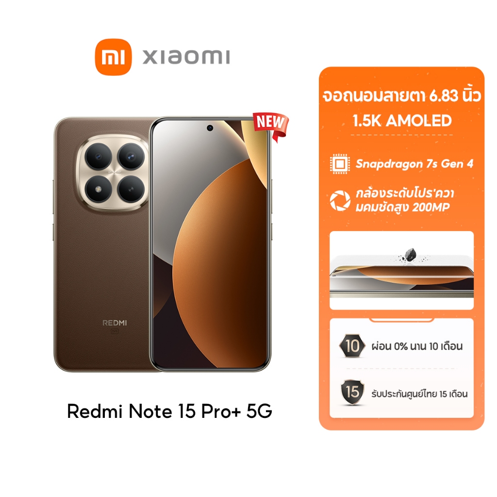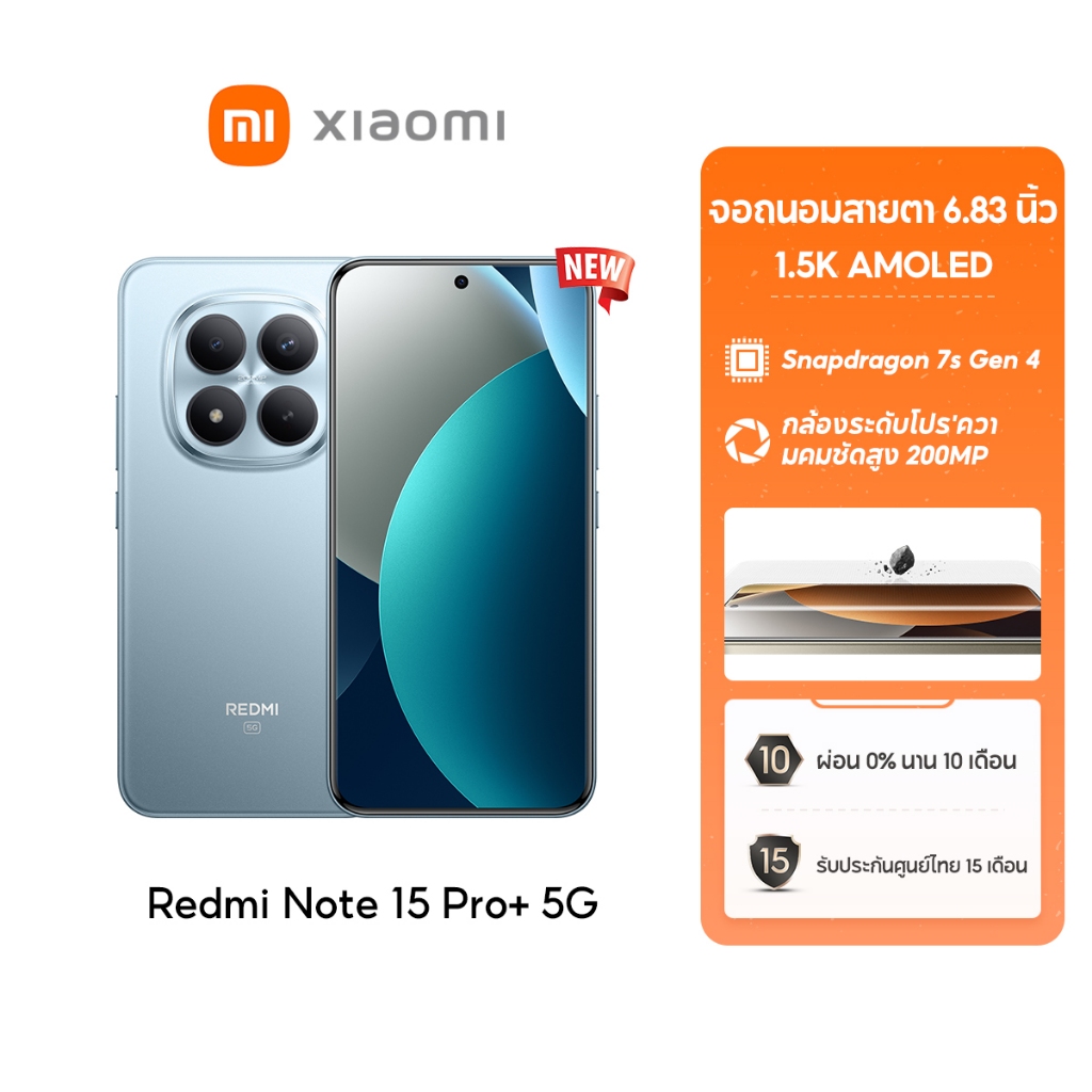 [NEW] Xiaomi Redmi Note 15 Pro+ 12+512G ชิป Snapdragon 7s Gen 4 กล้องระดับโปร'ความคมชัดสูง 200MP แบตเตอรี่ 6500mAh