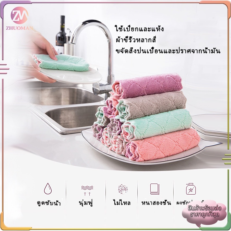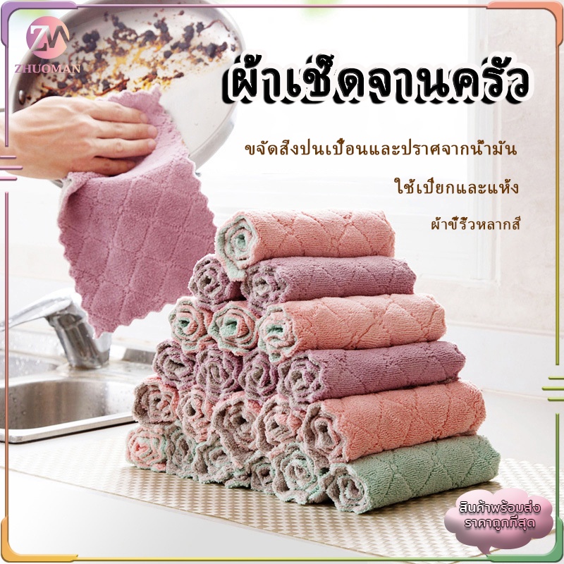 ผ้าเช็ดจาน ผลิตจากผ้านาโนดูดซับน้ำได้ดีเยี่ยม เนื้อผ้านุ่มนิ่ม แห้งไวมาก การจัดส่งแบบสุ่มสี