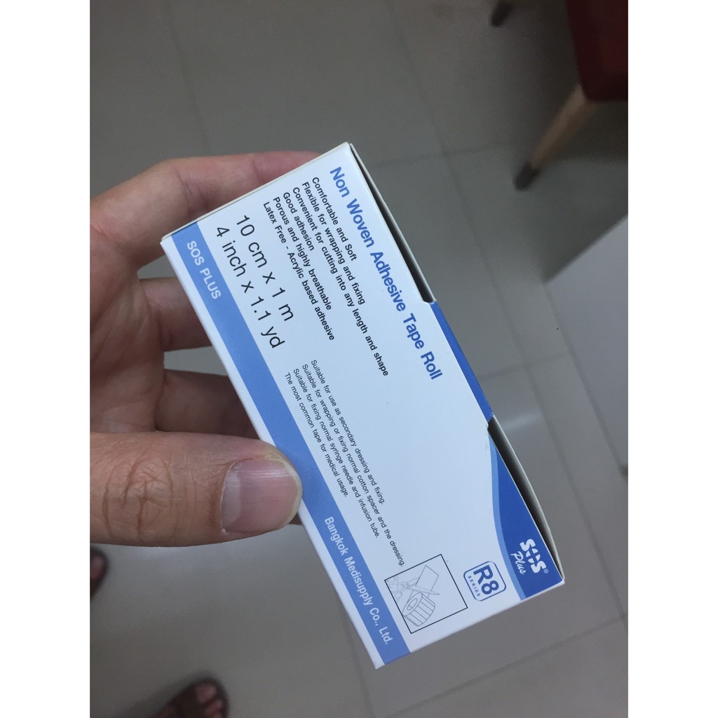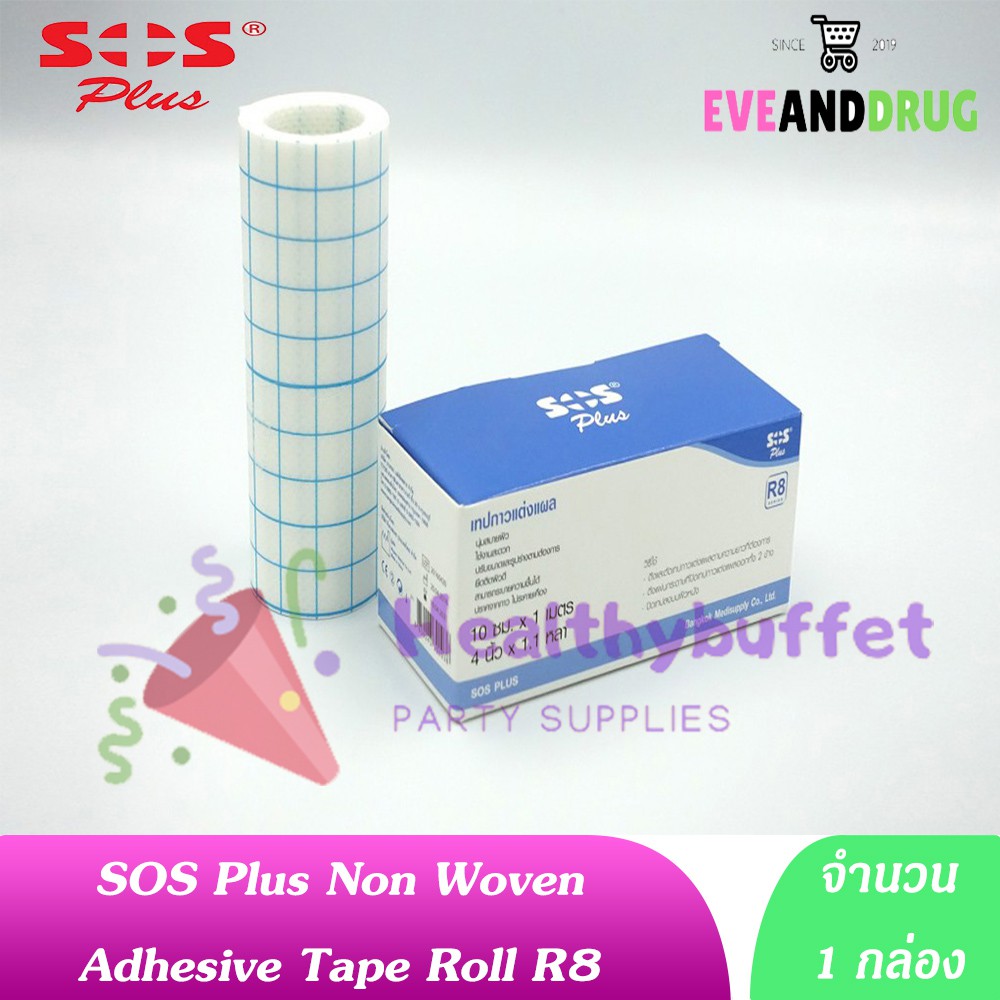 sos r8 เทปกาวแต่งแผล ( 1 กล่อง) เยื่อกระดาษ SOS PLUS Non Woven Tape 10cm x 1m ติดแน่น
