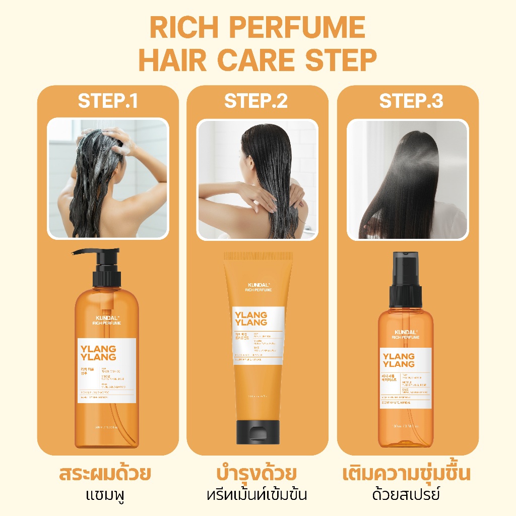 Kundal Rich Perfume White Musk Shampoo/Treatment/Hair Mist Ylang Ylang คุมดัล ริช เพอร์ฟูม แชมพู/ทรีทเม้นท์/แฮร์ มิสต์