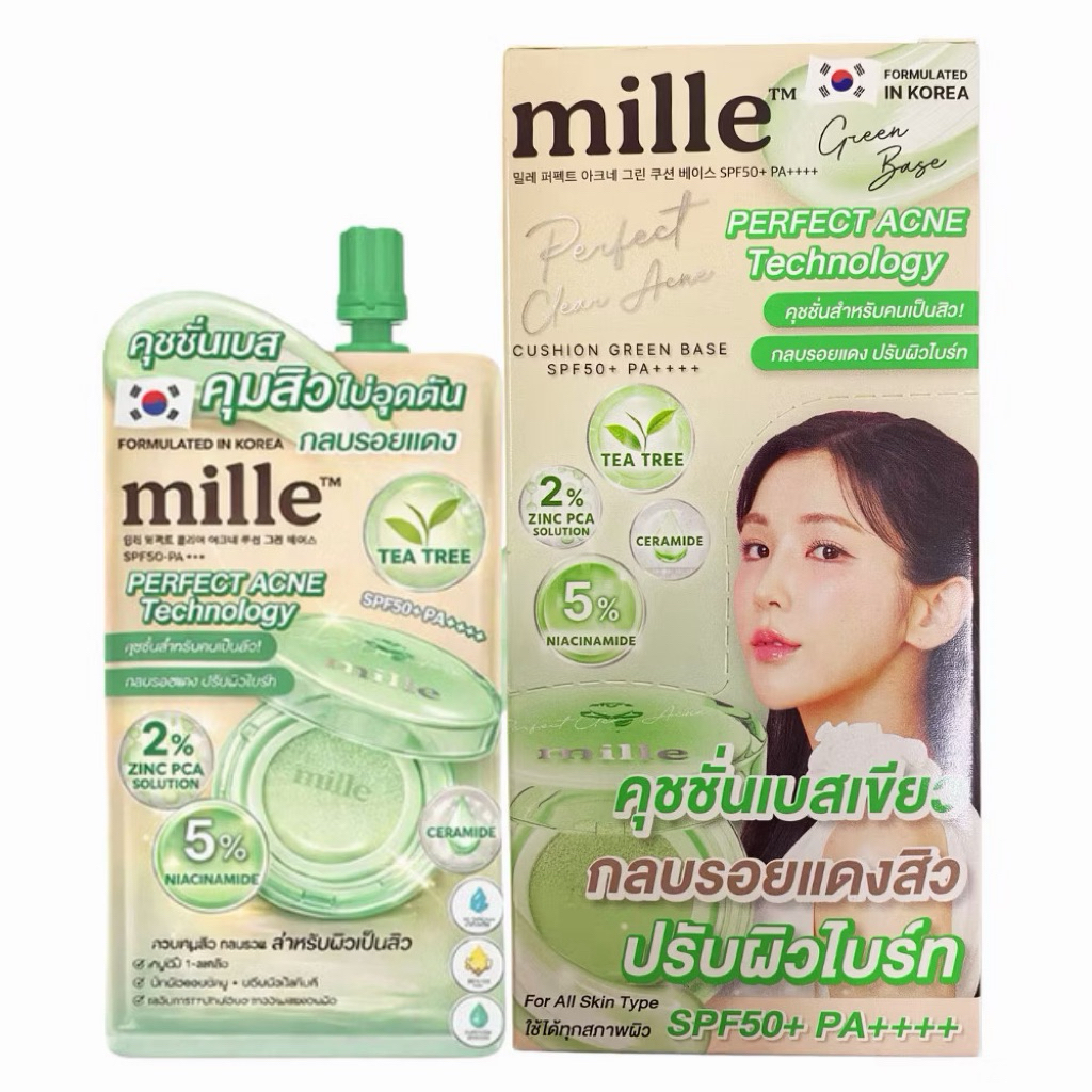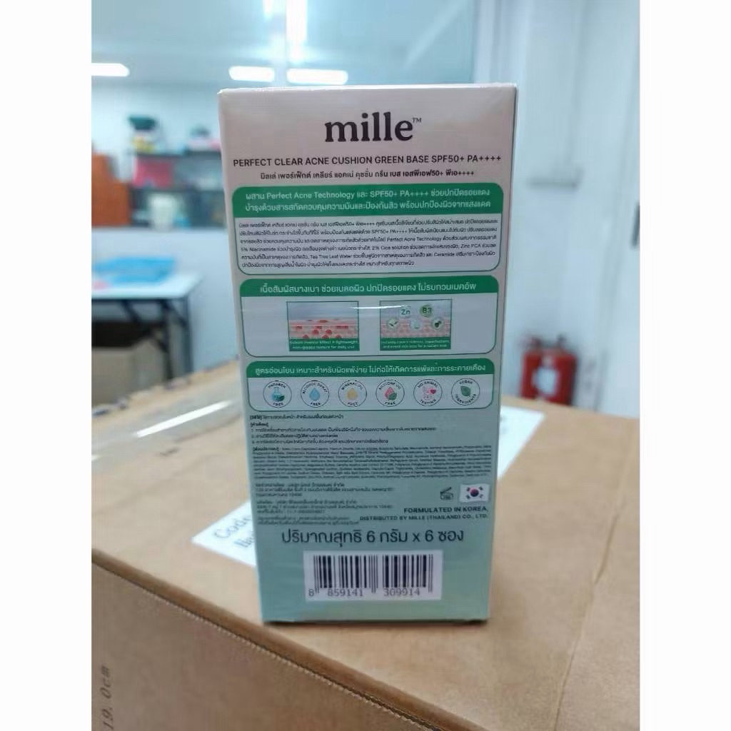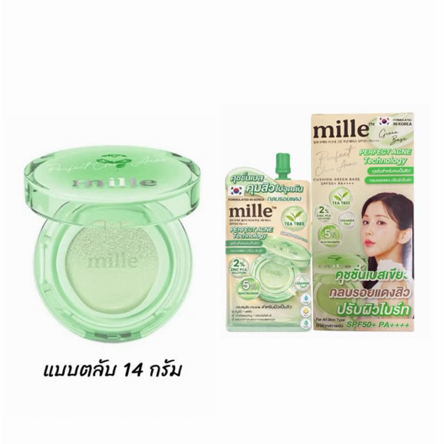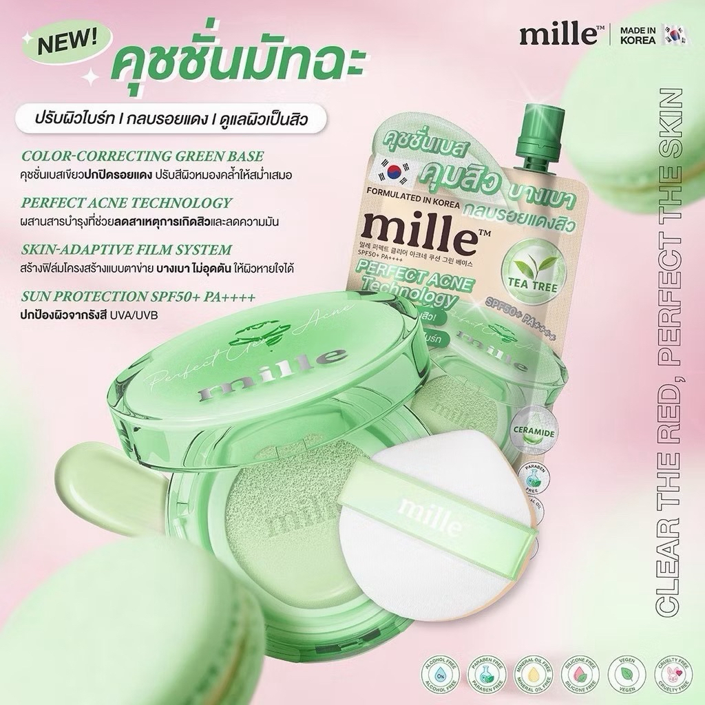 มิลเล่ คุณชั่นมัทฉะ คุชชั่นเบสเขียว Mille Perfect Clear Acne Cushion Green Base SPF 50+ PA+++ ตลับ 14gซอง6g