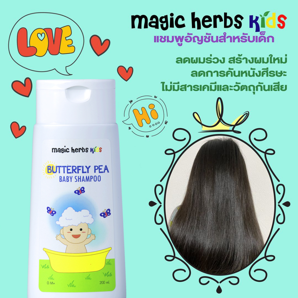 🤩 แพคคู่สุดคุ้ม 🎊 ขวดใหม่ 👶 แชมพูเด็กเร่งผมยาว 💜 สูตรอัญชัน 🌿 ส่วนผสมธรรมชาติ 100% ไม่ใส่สีและกลิ่น ✨ Magic herbs kids