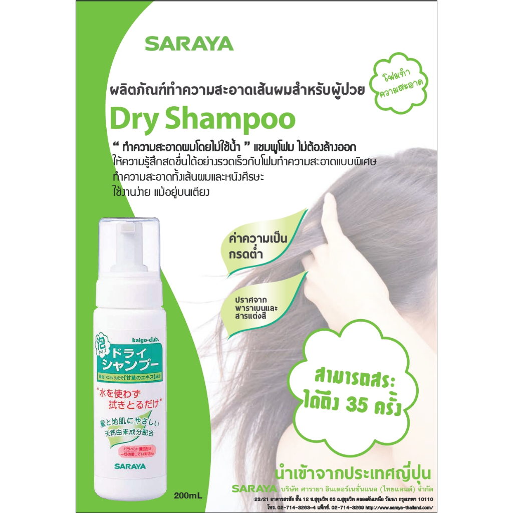 SARAYA Dry Shampoo 200 ml. : ผลิตภัณฑ์ทำความสะอาดเส้นผมสำหรับผู้ป่วย โฟมแชมพูสระผมแบบแห้ง ไม่ต้องล้างออก