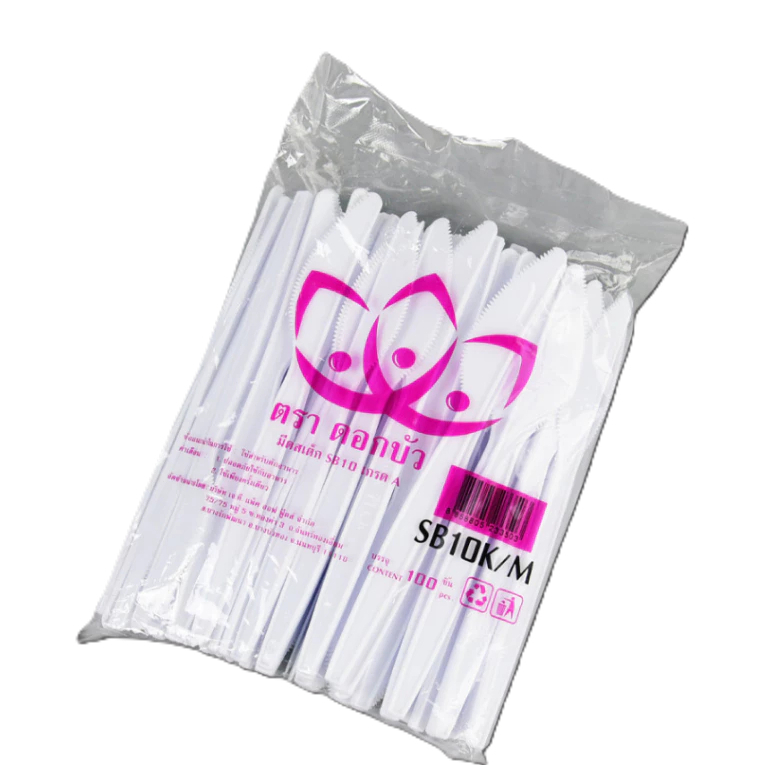 มีดสเต็ก พลาสติกสีขาว SB10 ตราดอกบัว แพ็ค/100ชิ้น