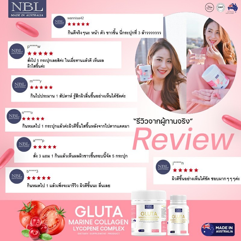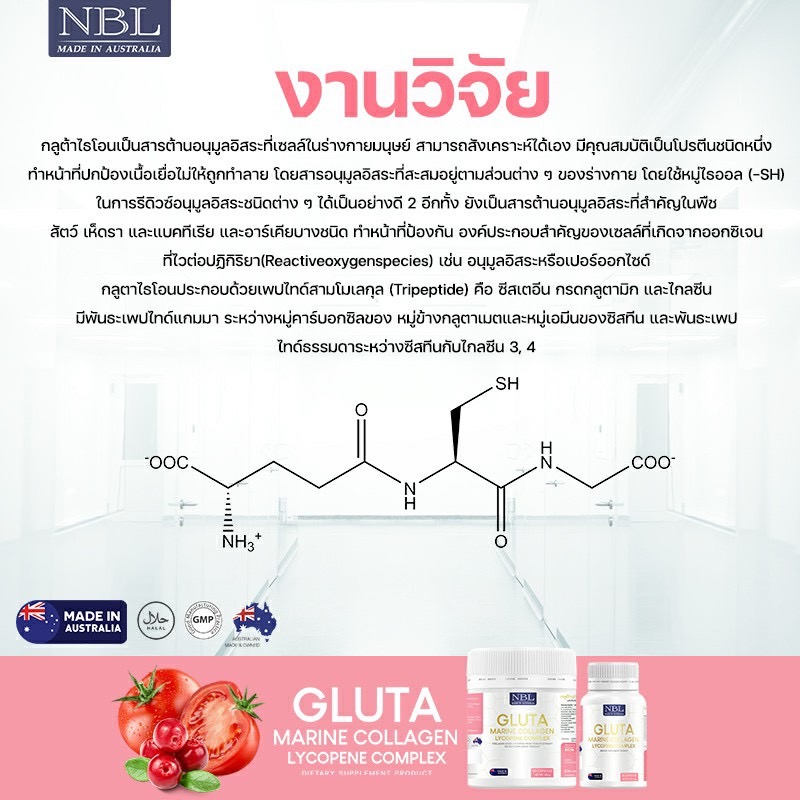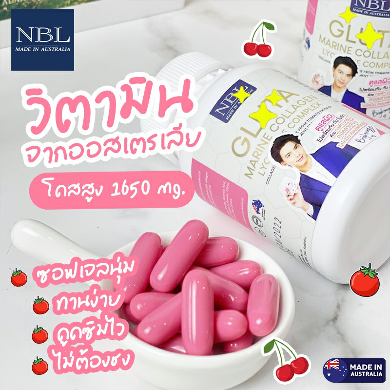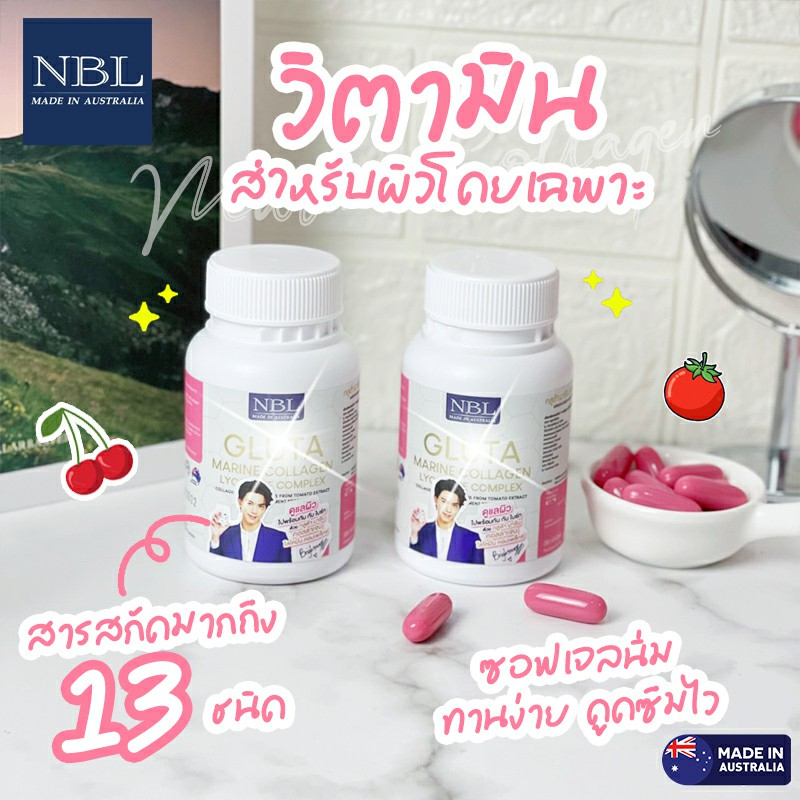 NBL Gluta Marine Collagen กลูต้า มารีน คอลลาเจน กลูต้าจากประเทศออสเตรเลีย ชนิดซอฟเจล ผิวขาวใส อมชมพู 30 เม็ด