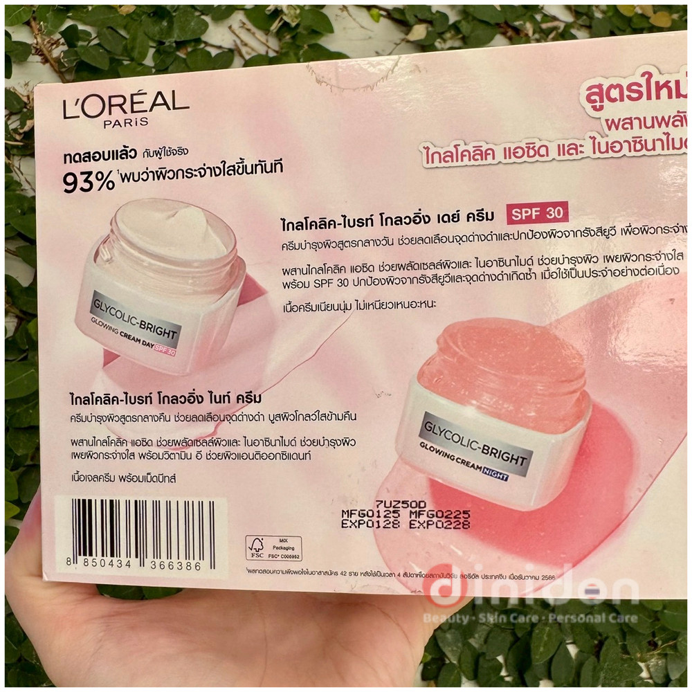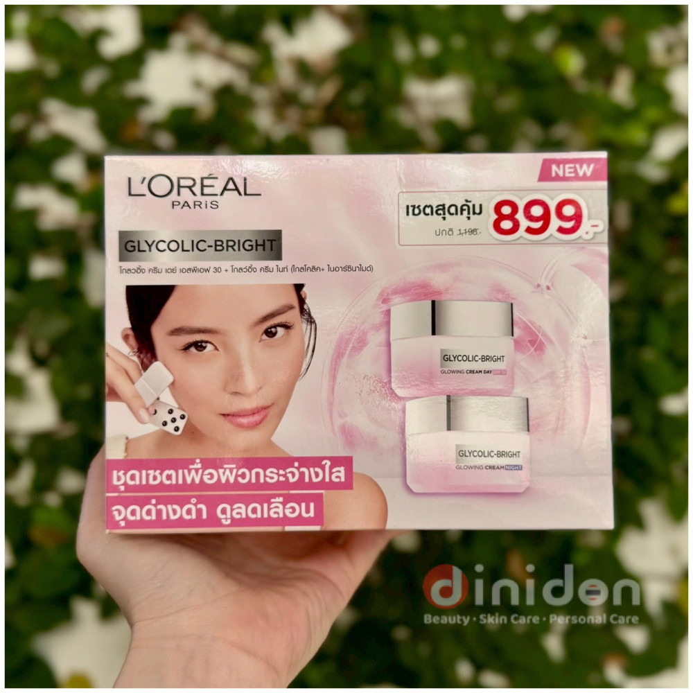 ((dinidon Shop)) [Set] L'Oreal Glycolic-Bright Glowing SPF30 Day Cream 50 Ml. + Night Cream 50 Ml.