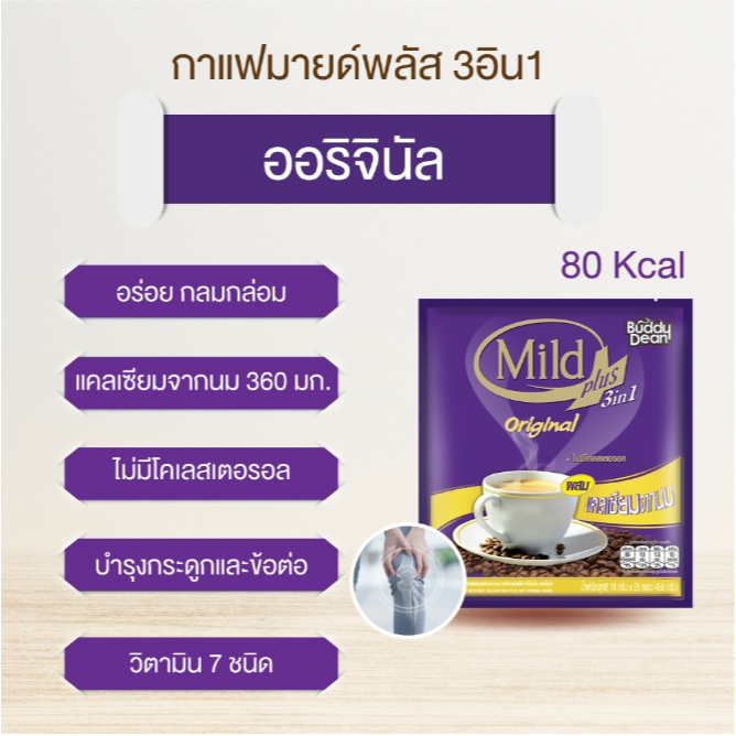 บัดดี้ดีน มายด์พลัส 3in1 กาแฟผสมวิตามินและแคลเซียมจากนม ขนาด 17-18 กรัม **แพ็ค 25 ซอง**