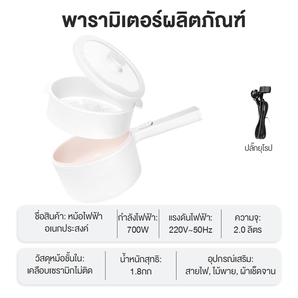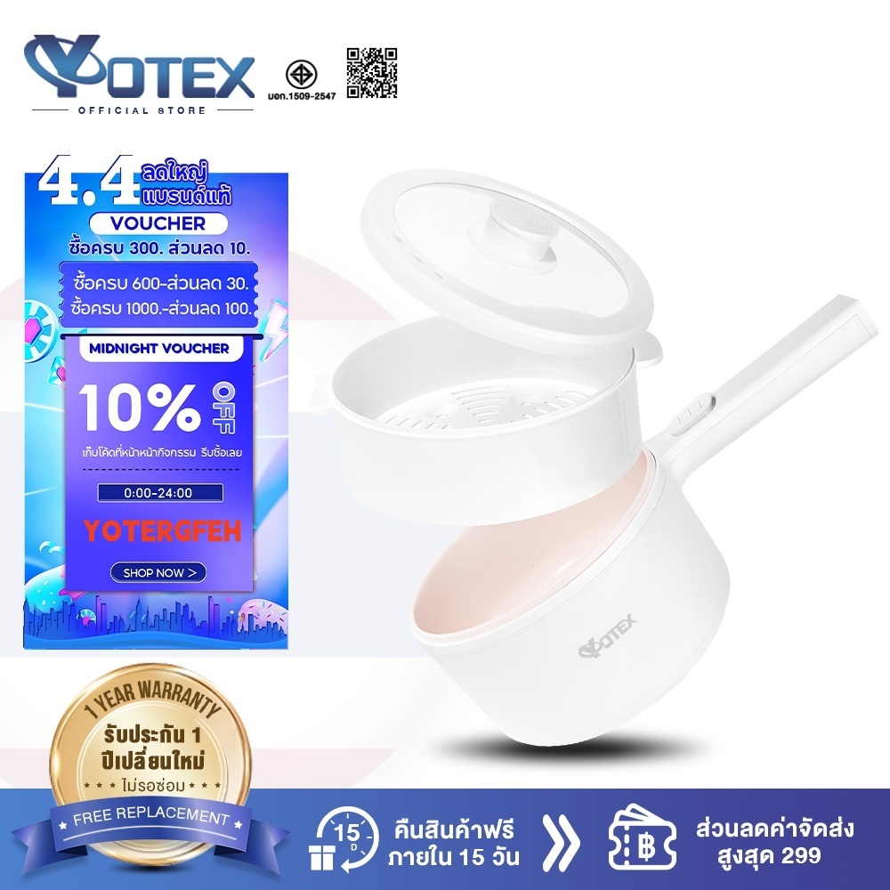 Yotex หม้อไฟฟ้า อเนกประสงค์ 2L ไม่ติดหม้อ กระทะไฟฟ้า เหมาะสำหรับ 2-3 คน ด้วยเรือกลไฟ ควบคุมอุณหภูมิได้ 2 ปุ่ม
