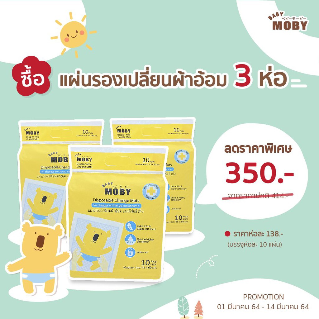 Moby แผ่นรองเปลี่ยนผ้าอ้อม 3 ห่อ (บรรจุห่อล่ะ10แผ่น)