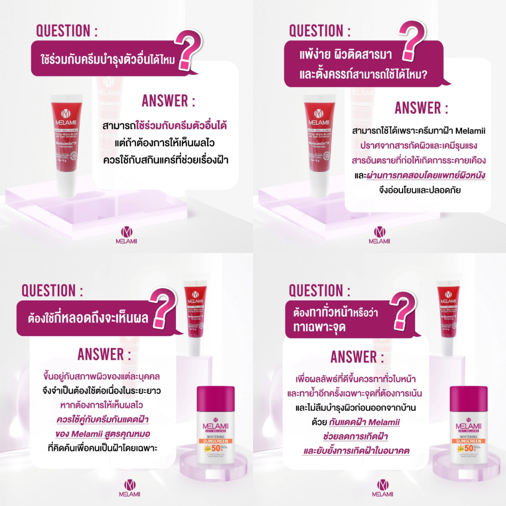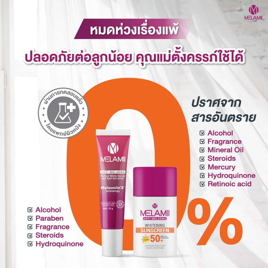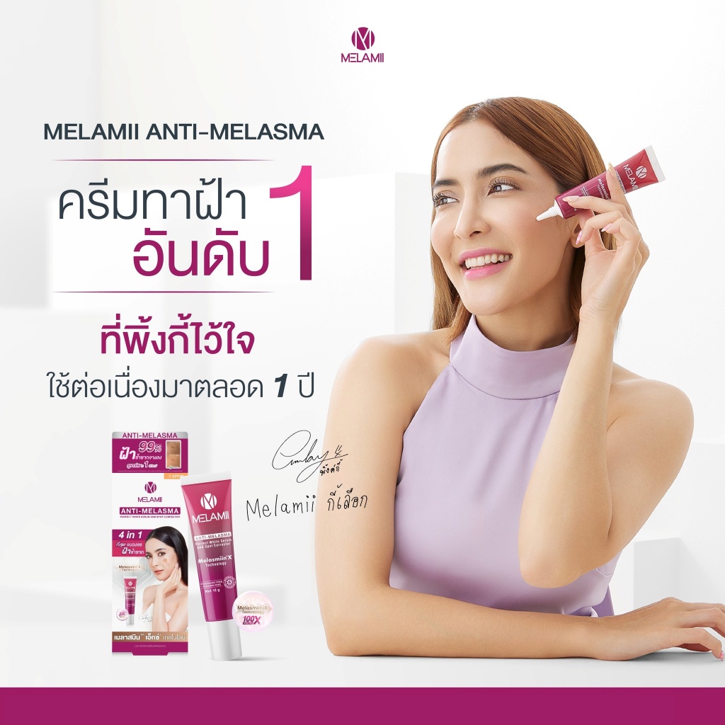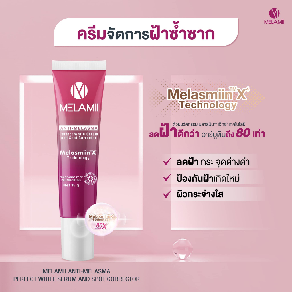 Melamii Anti Melasma เมลามิ แอนติ เมลาสม่า [เลือกขนาด] / Melamii Anti Melasma Whitening Sunscreen SPF50+ [30 ml./กล่อง]